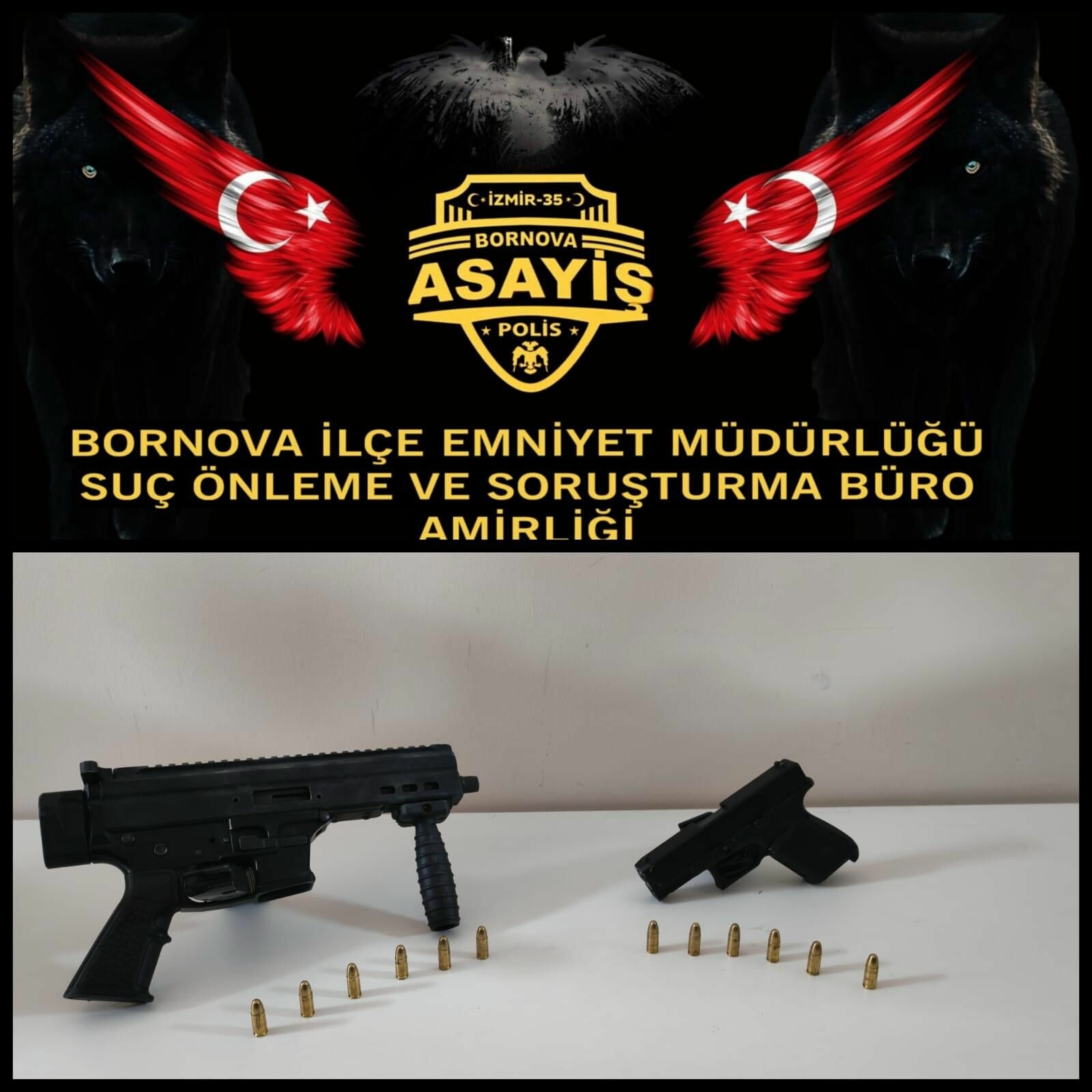 Evde yapılan aramada biri otomatik olmak üzere 2 ruhsatsız tabanca ve bu silahlara ait 12 fişek ele geçirildi. Gözaltına alınan ve işlemlerinin ardından bugün adliyeye sevk edilen şüphelilerden N.T. ve O.T. çıkarıldığı hakimlik tarafından tutuklandı, A.İ. ise adli kontrol şartıyla serbest bırakıldı.