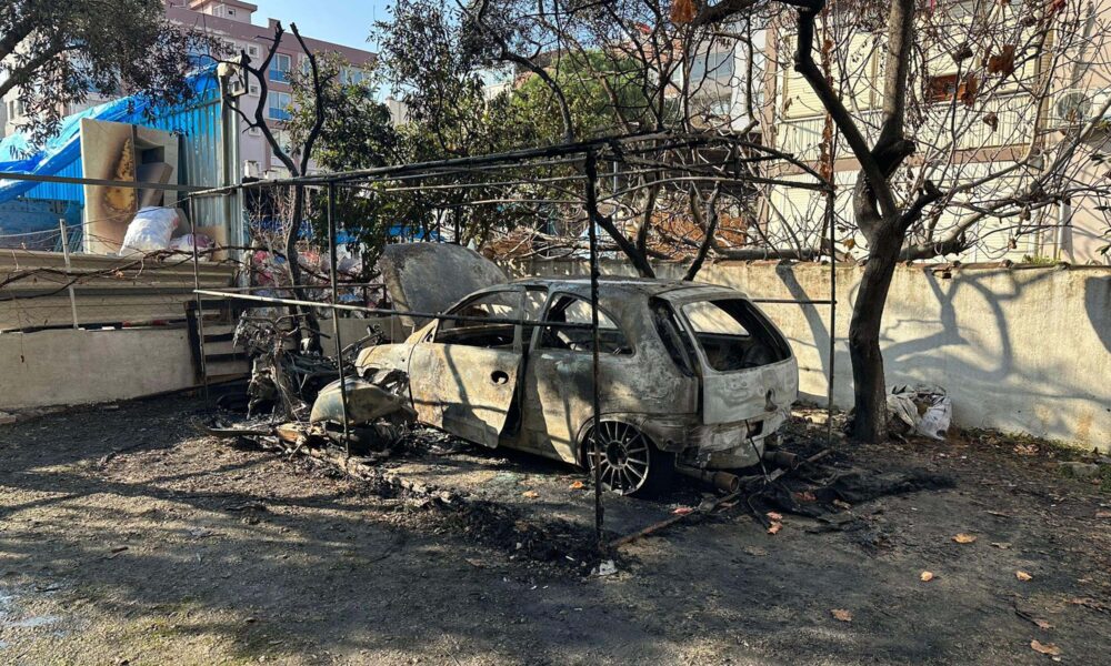 İzmir’de kundaklandığı iddia edilen otomobille 2 motosiklet yandı