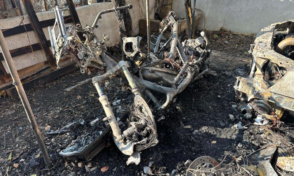 • İzmir'in Ödemiş ilçesinde kundaklandığı öne sürülen park halindeki otomobille iki motosiklet yandı. Fotoğraf: Ödemiş (İzmir), (DHA)