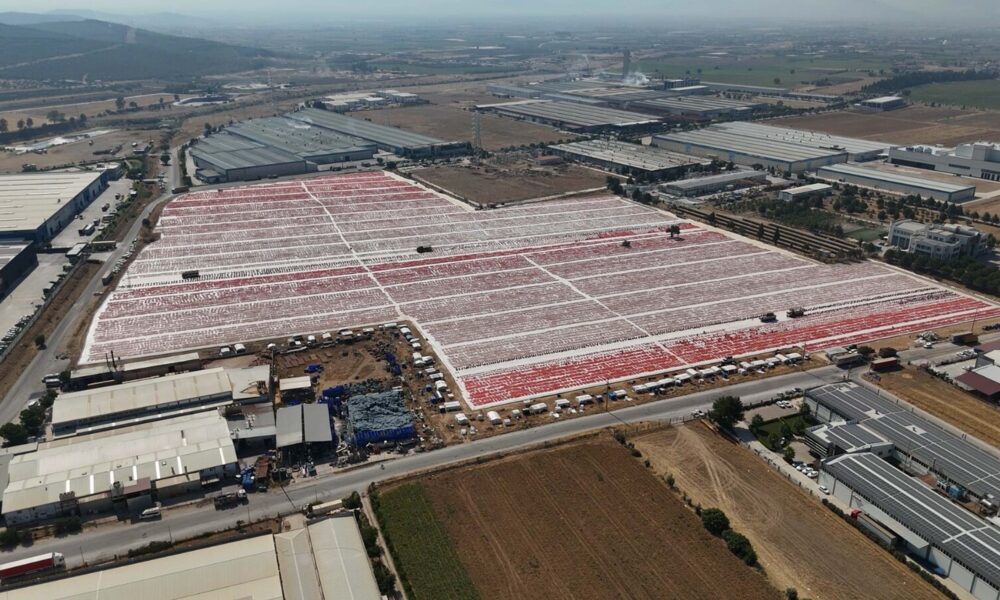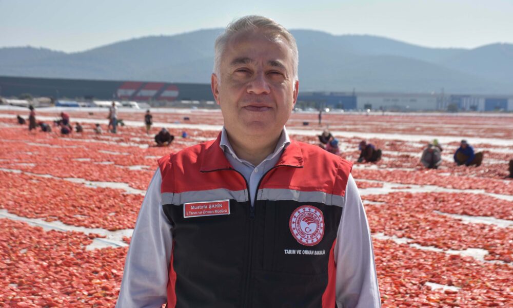 Türkiye'nin domates üretiminde en önemli merkezlerinden biri olan İzmir'in Torbalı ilçesinde kuru domates mesaisi devam ediyor.Mustafa Şahin (Fotoğrafta).Fotoğraf:Seza Nur ALPDÜNDAR/İzmir,(DHA)