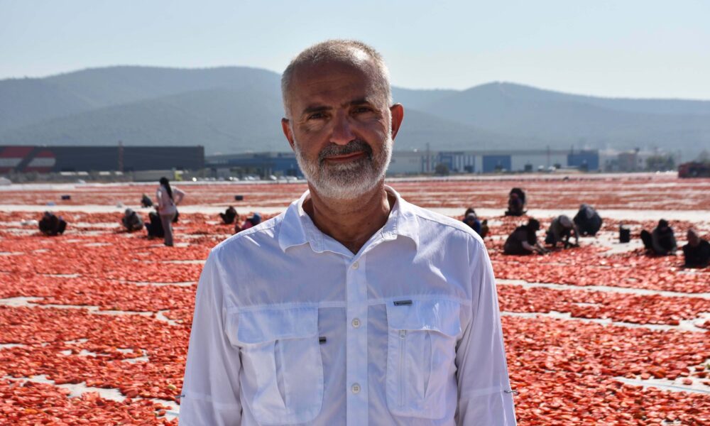 Türkiye'nin domates üretiminde en önemli merkezlerinden biri olan İzmir'in Torbalı ilçesinde kuru domates mesaisi devam ediyor.Kemal Saygıner (Fotoğrafta).Fotoğraf:Seza Nur ALPDÜNDAR/İzmir,(DHA)
