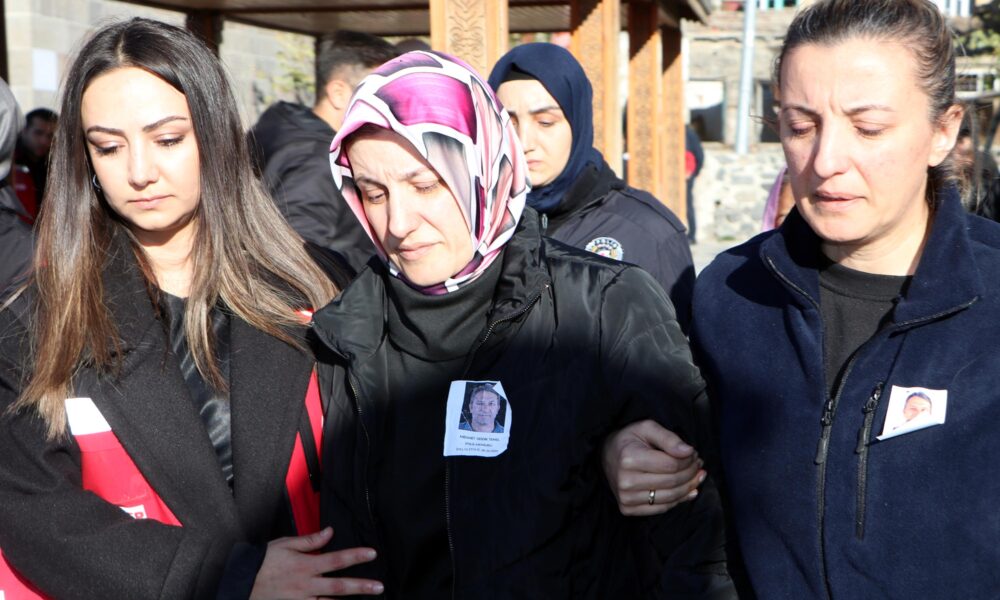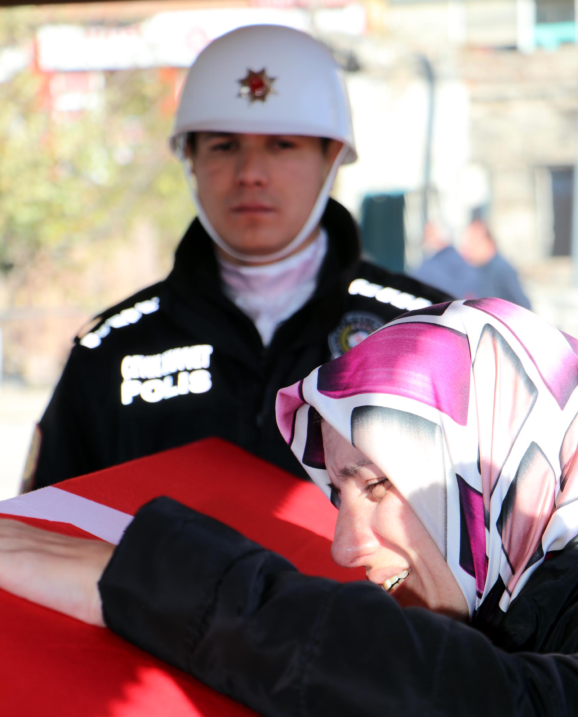 • İzmir'in Çiğli ilçesinde markette çıkan tartışmada öldürülen polis memuru Mehmet Sıddık Temel (51), memleketi Erzurum'da son yolculuğuna uğurlandı. (Fotoğrafta, polisin eşi ortada) Fotoğraf: Turgay İPEK/Erzurum, (DHA)