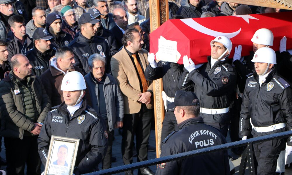 • İzmir'in Çiğli ilçesinde markette çıkan tartışmada öldürülen polis memuru Mehmet Sıddık Temel (51), memleketi Erzurum'da son yolculuğuna uğurlandı. Fotoğraf: Turgay İPEK/Erzurum, (DHA)