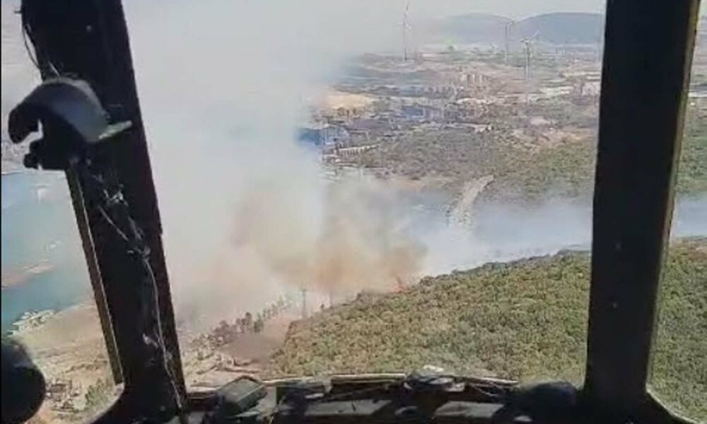 • İzmir'in Aliağa ilçesinde Nemport Limanı yakınlarında orman yangını çıktı. Alevlere havadan ve karadan müdahale ediliyor.Fotoğraf:Aliağa (İzmir),(DHA)