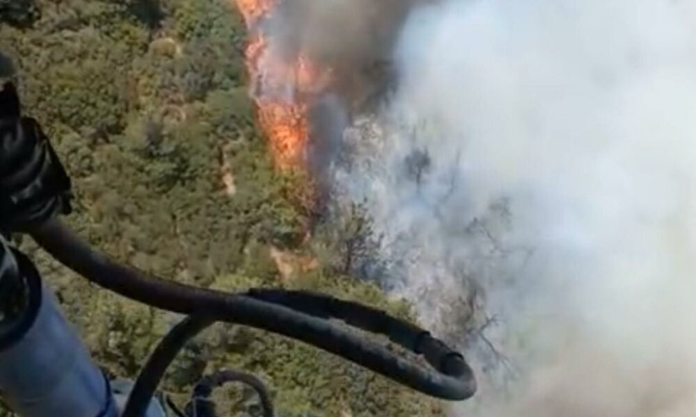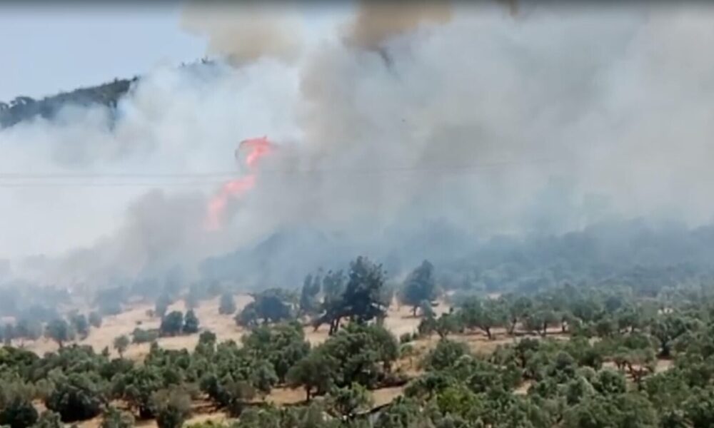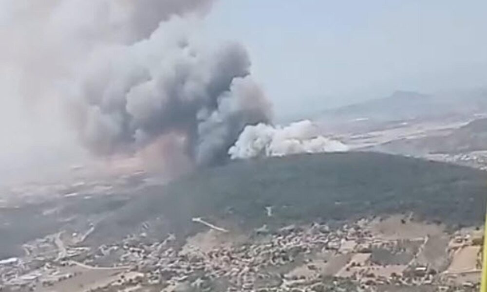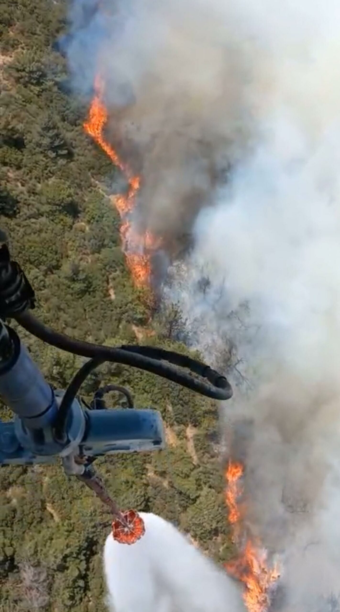 • İzmir'in Foça ilçesinde orman yangını çıktı. Alevlere havadan ve karadan müdahale sürüyor. Fotoğraf: İzmir,(DHA)