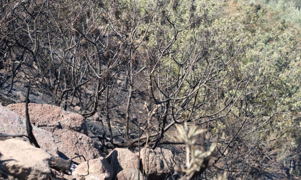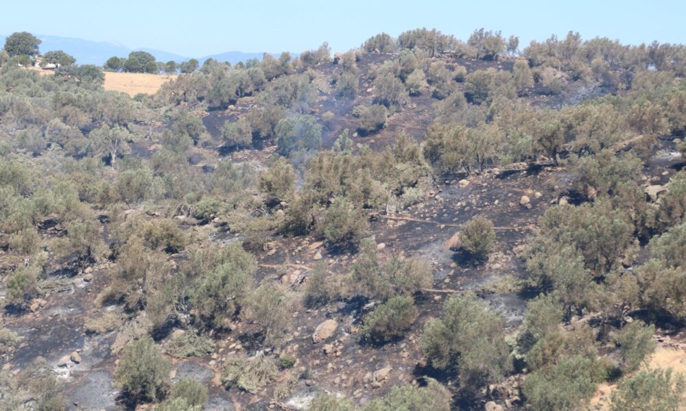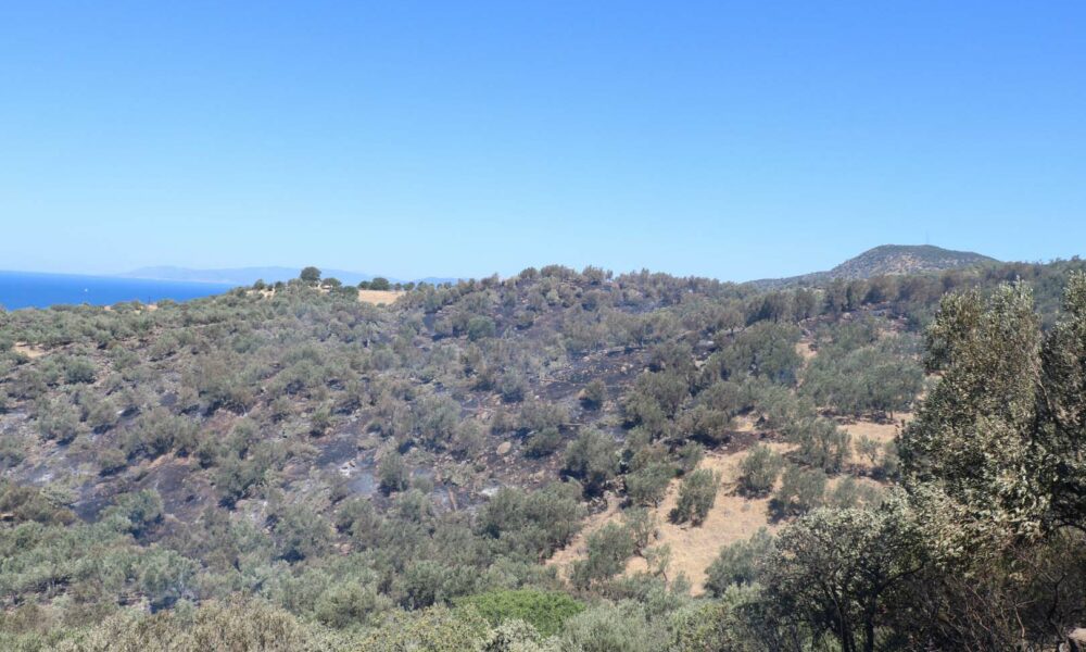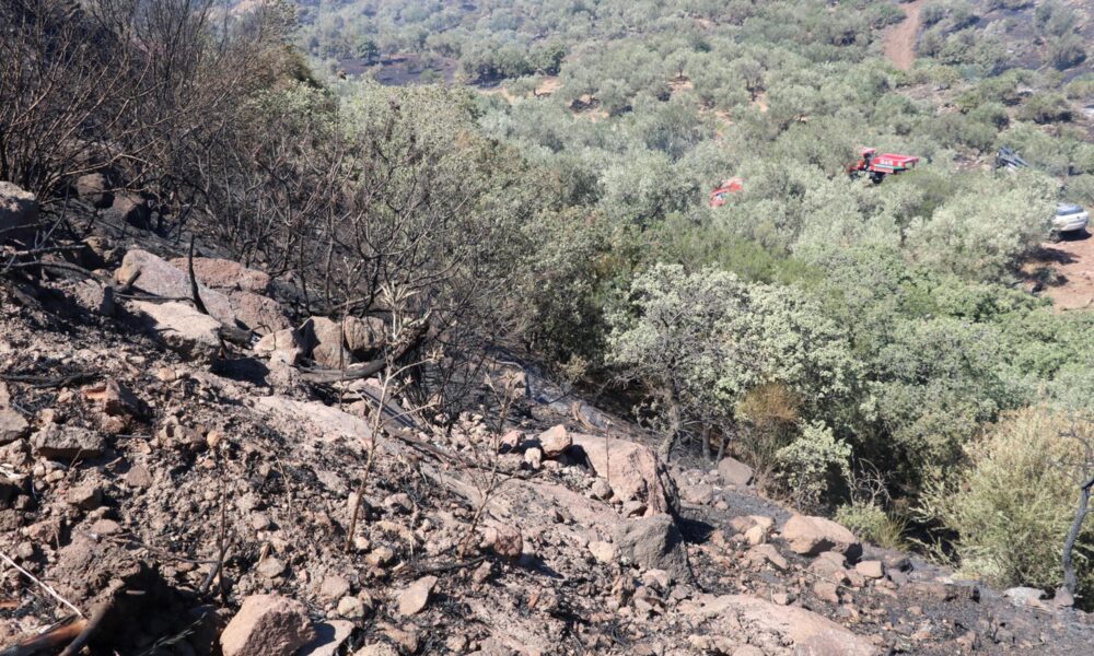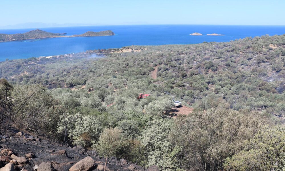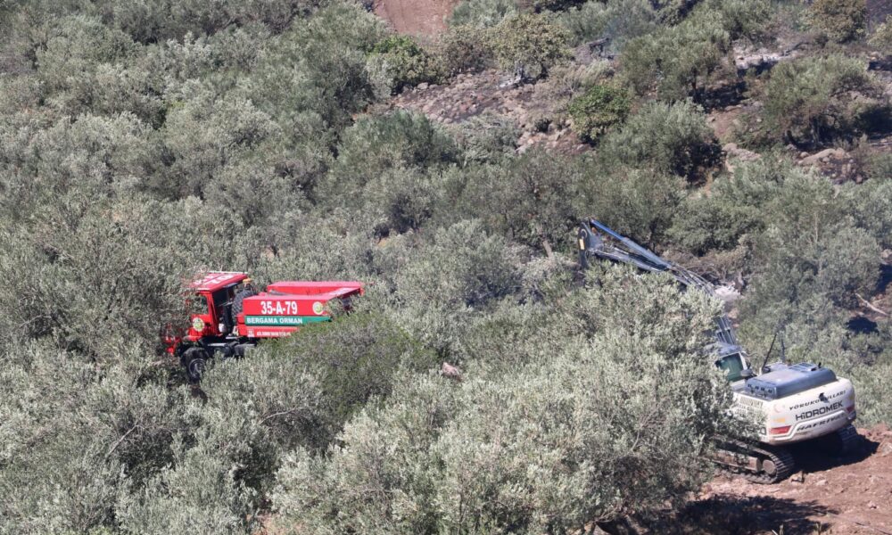 İzmir’de otların tutuşmasıyla çıkıp zeytinliğe sıçrayan yangın kontrol altında