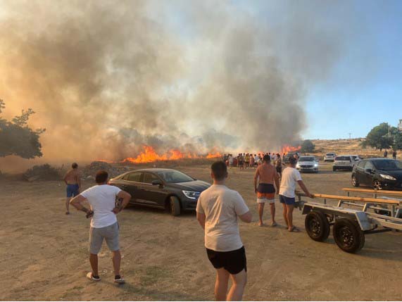 Seferihisarın Akarca Mahallesinde bulunan iki beach clubın arasındaki otopark üzerindeki otlukta saat 18.30 sıralarında yangın çıktı. Alevler, kuru otlar nedeniyle kısa sürede büyüyerek onlarca aracın bulunduğu otopark ve yakındaki sitelere doğru ilerlemesi panik yarattı. Bazı vatandaşlar tedbir amacıyla evlerini terk ederken, ihbar üzerine bölgeye çok sayıda itfaiye ekibi sevk edildi. Alevlerin ulaştığı otoparkta iki otomobil son anda uzaklaştırılarak alevlerden kurtarıldı. İtfaiye ekipleri, alevleri 1 saatlik çaba sonucu otoparktaki araçlara ve sitelere ulaşmadan söndürdü.