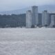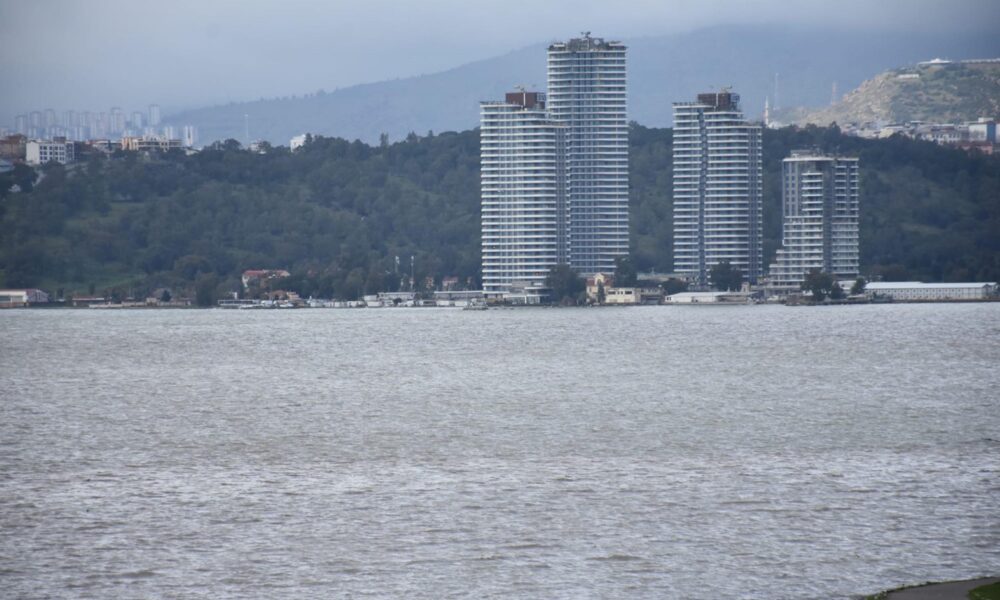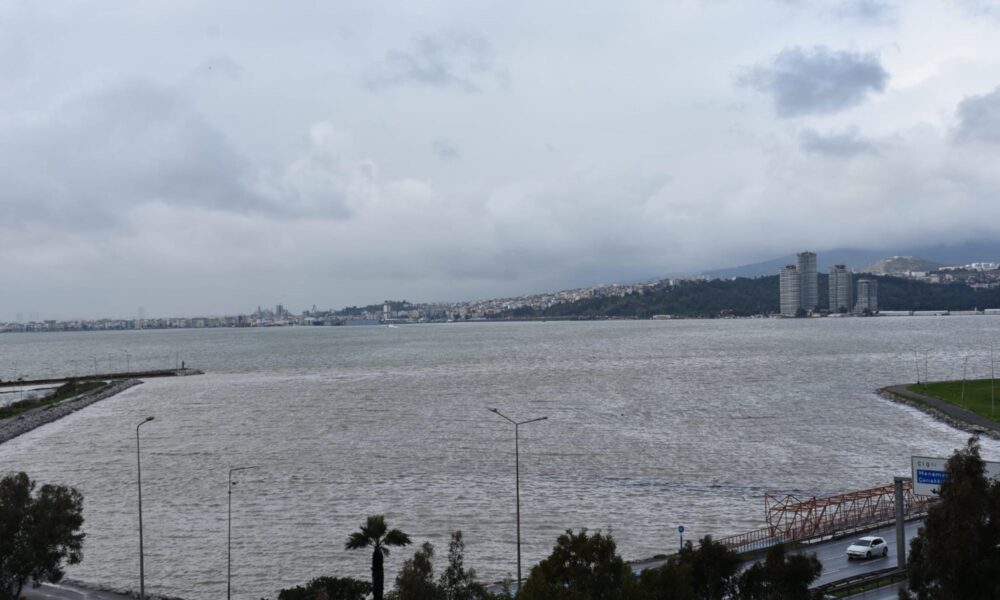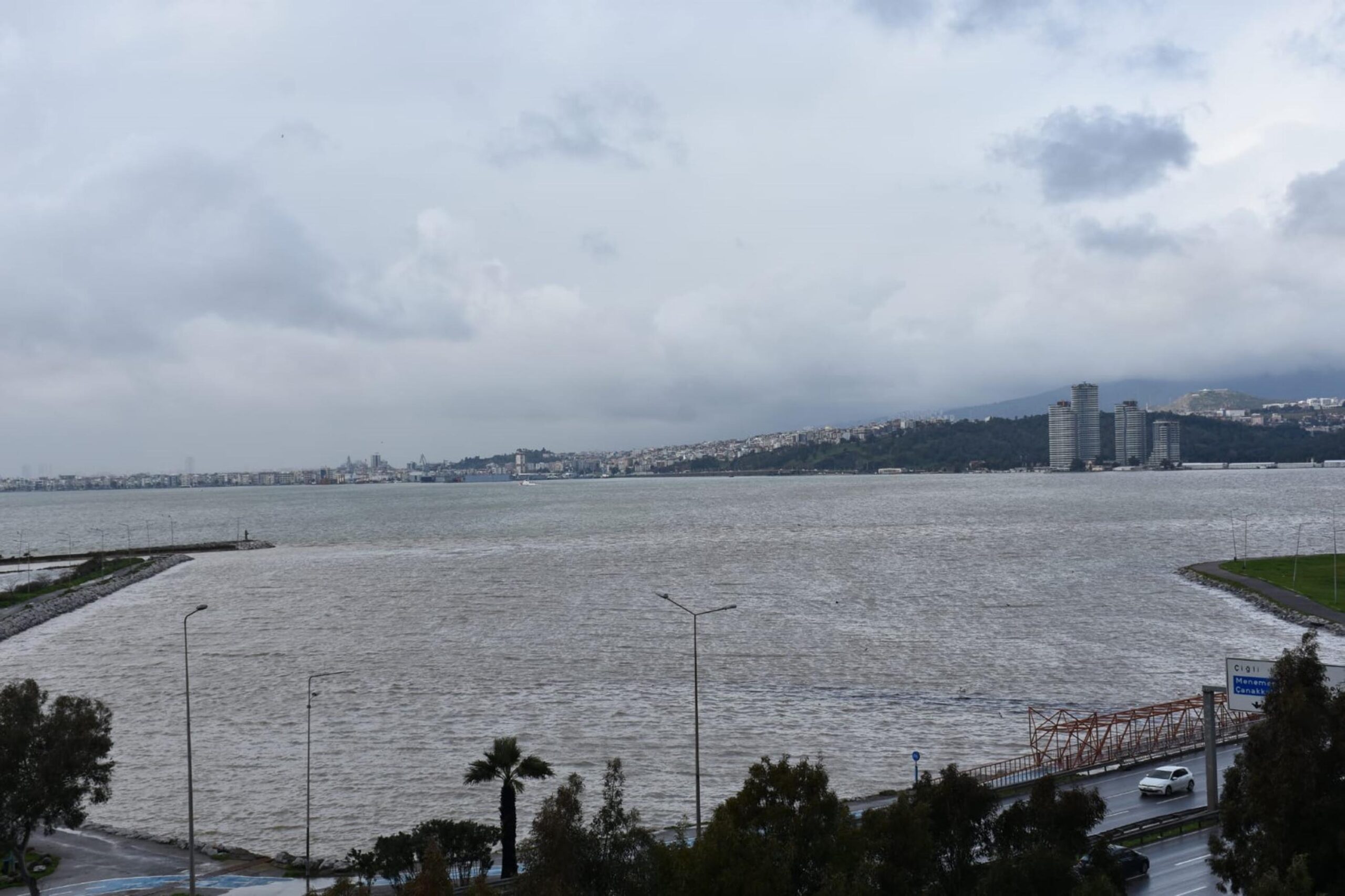 Sağanak nedeniyle derelerden denize akan çamurlu su, İzmir Körfezinde renk değişimine neden oldu. Körfezin bazı bölümleri kahverengiye döndü.