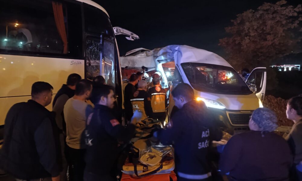 İzmir’de servis otobüsü ile servis minibüsü çarpıştı: 13 yaralı