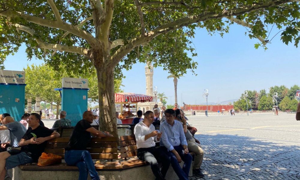 İzmir’de sıcaktan bunalanlar, ağaç altlarında serinlemeye çalıştı