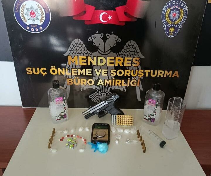 Menderes İlçe Emniyet Müdürlüğü Suç Önleme ve Soruşturma Büro Amirliği ekiplerince, uyuşturucu madde ticareti yapan şahıslara yönelik bugün, operasyon gerçekleştirildi. Operasyonda 885 gram GHB (gamma hidroksibutirat) uyuşturucu madde, 15 parça halinde satışa hazır 31 gram metamfetamin, 27 extasy hap, 8 sentetik uyuşturucu hap, 1 hassas terazi, 1 ruhsatsız tabanca ve 51 tabanca mermisi ele geçirildi. Operasyonda gözaltına alınan M.P.’nin emniyetteki işlemlerinin sürdüğü öğrenildi.