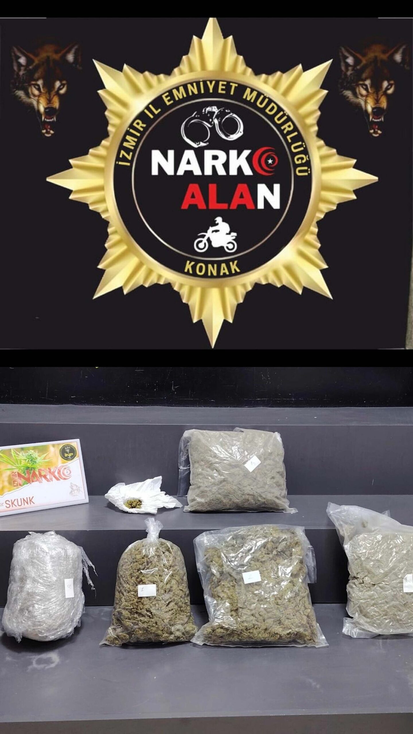 Konak İlçe Emniyet Müdürlüğü ve Narkotik Suçlarla Şube Müdürlüğü bünyesindeki Konak Narko Alan ekipleri, bir evde yüklü miktarda uyuşturucu olduğu bilgisine ulaştı. Yapılan çalışmaların ardından önceki gün polis ekipleri tarafından eve yapılan operasyonda, 5 kilo 135 gram skunk ele geçirildi. Uyuşturucuyla ilgili B.İ. ve İ.C., gözaltına alındı. Emniyetteki işlemleri sonrası adliyeye sevk edilen 2 şüpheli de tutuklandı.