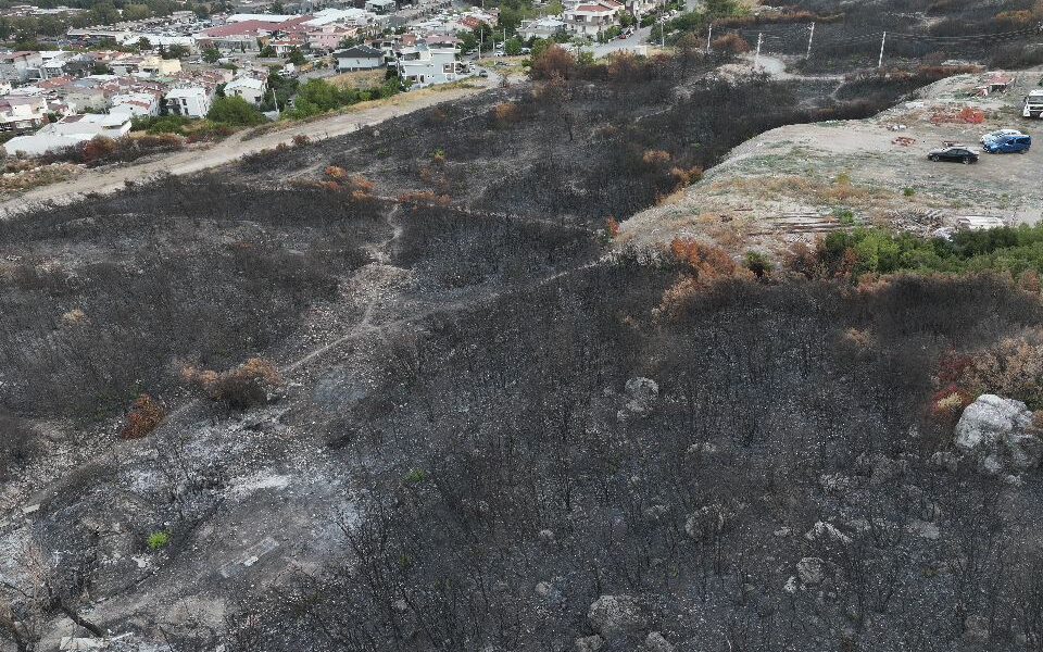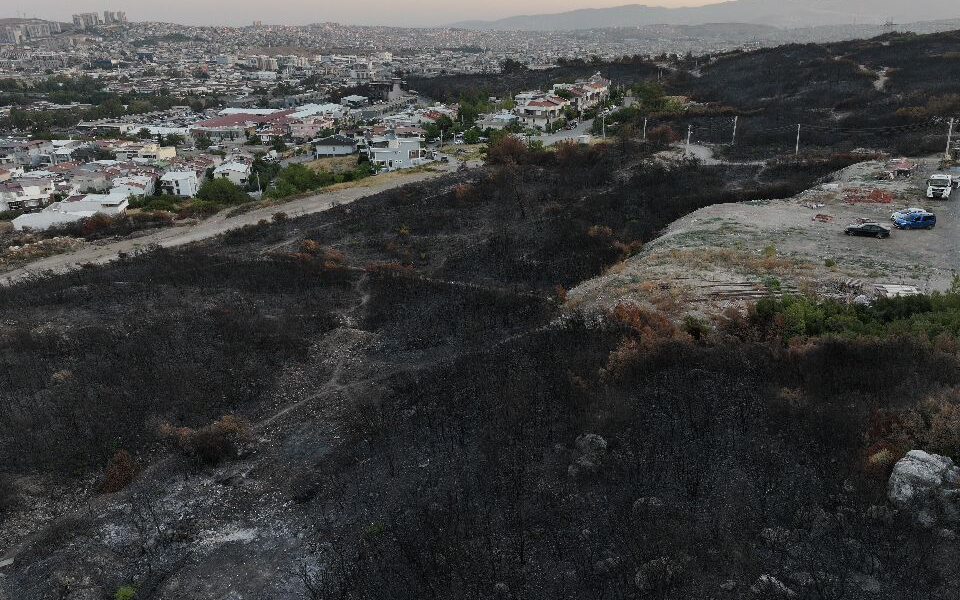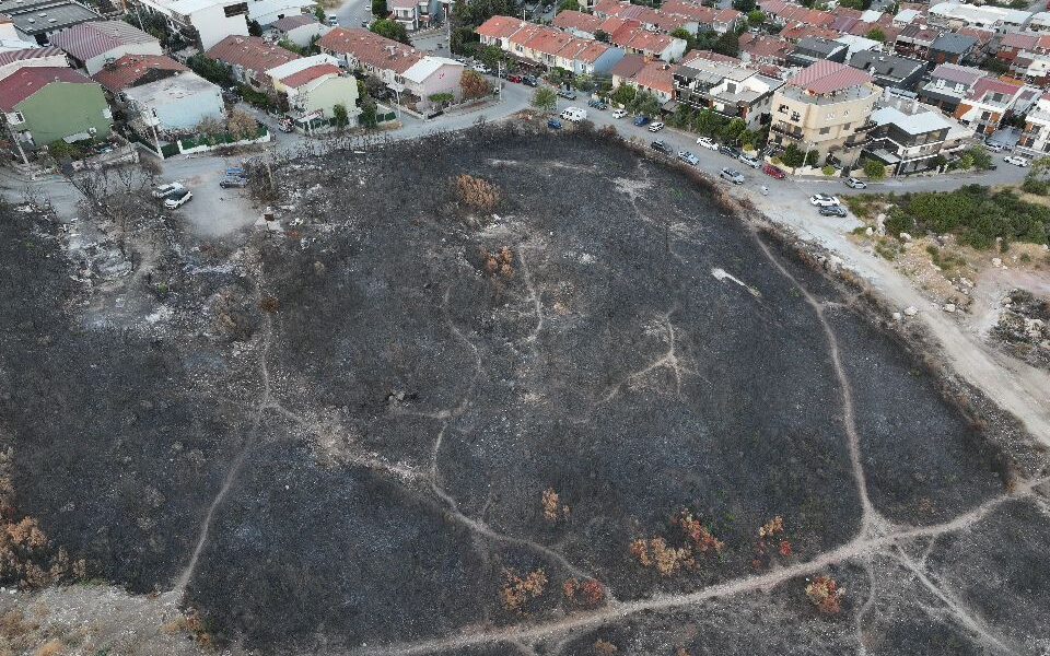 İzmir’de yerleşim yerlerinin çevresinde yanan alanlar dronla görüntülendi