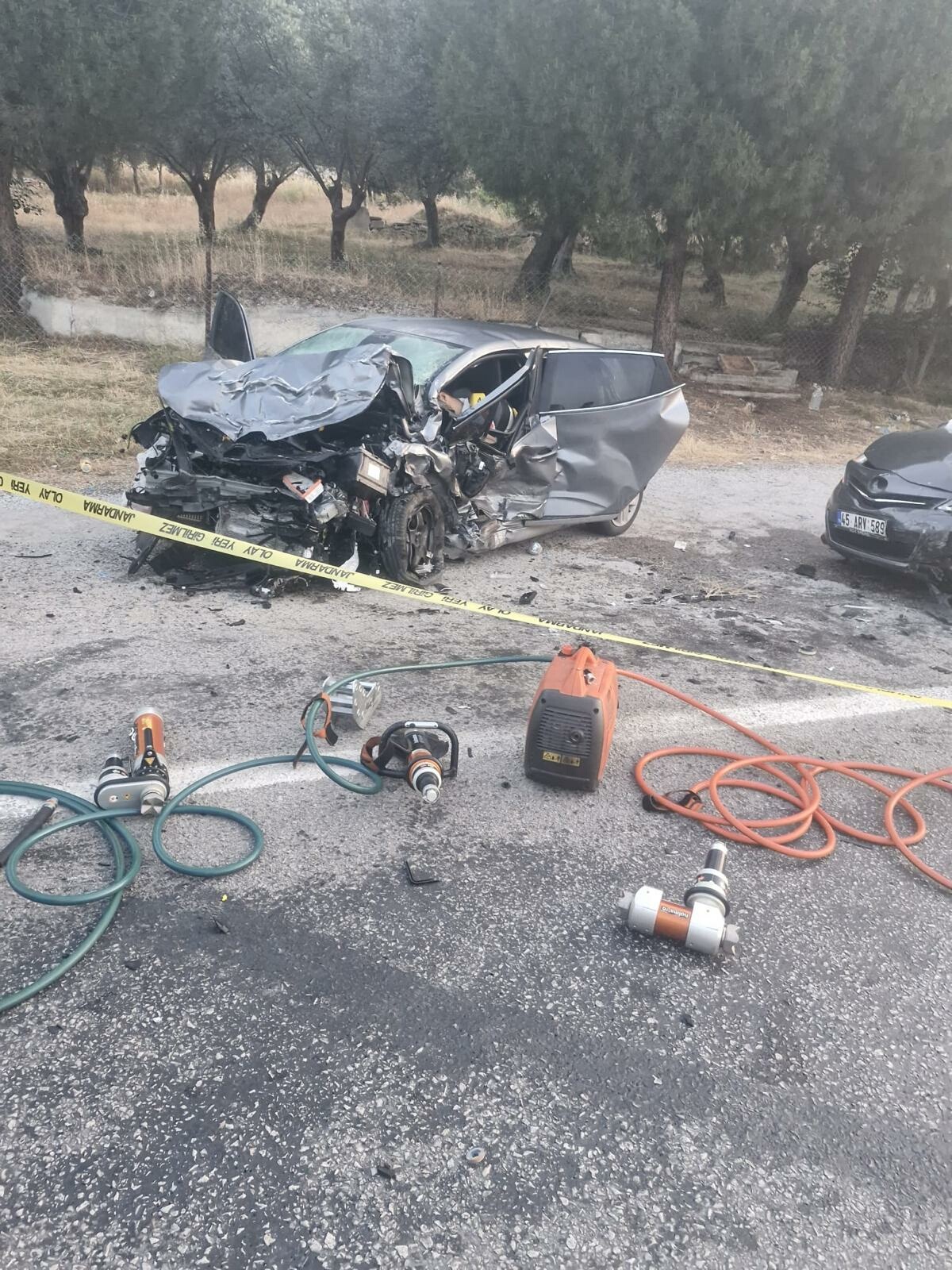 İzmir'in Menderes ilçesinde 3 otomobilin karıştığı zincirleme kazada 5 kişi yaşamını yitirdi, 2 kişi yaralandı. Fotoğraf:İzmir,(DHA)