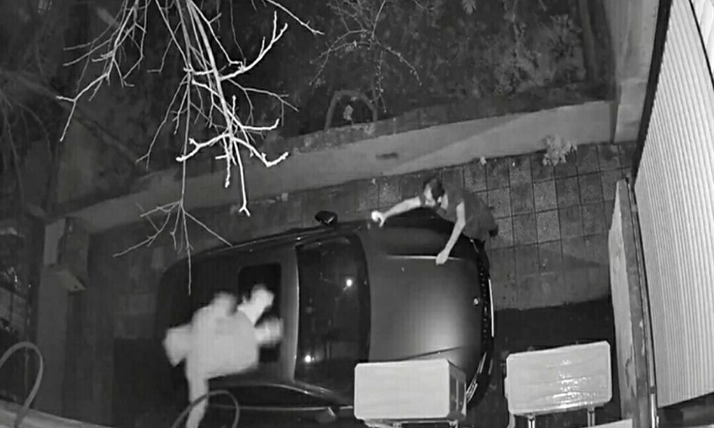 Olay, 29 Mart Pazar günü saat 21.00 sıralarında Dicle Mahallesi 363 Sokak’ta meydana geldi. Hırsızlık amacıyla 4 katlı binanın giriş katındaki iş yerinin penceresinde bulunan demir korkuluklara basan O.Ç. (33), birinci kattaki klimanın üzerine tırmandı. Bu sırada binada oturan Onur D., güvenlik kamerasından durumu fark edip, eline aldığı fenerle bahçeye koştu. Onur D., şüpheliye bağırarak aşağıya inmesini istedi. Ancak, şüpheli park halinde duran aracın üzerine atladı. Daha sonra otomobilde kendisini bekleyen arkadaşı F.K. (37) ile bölgeden uzaklaştı. Olay anı ise binanın güvenlik kamerasına yansıdı.