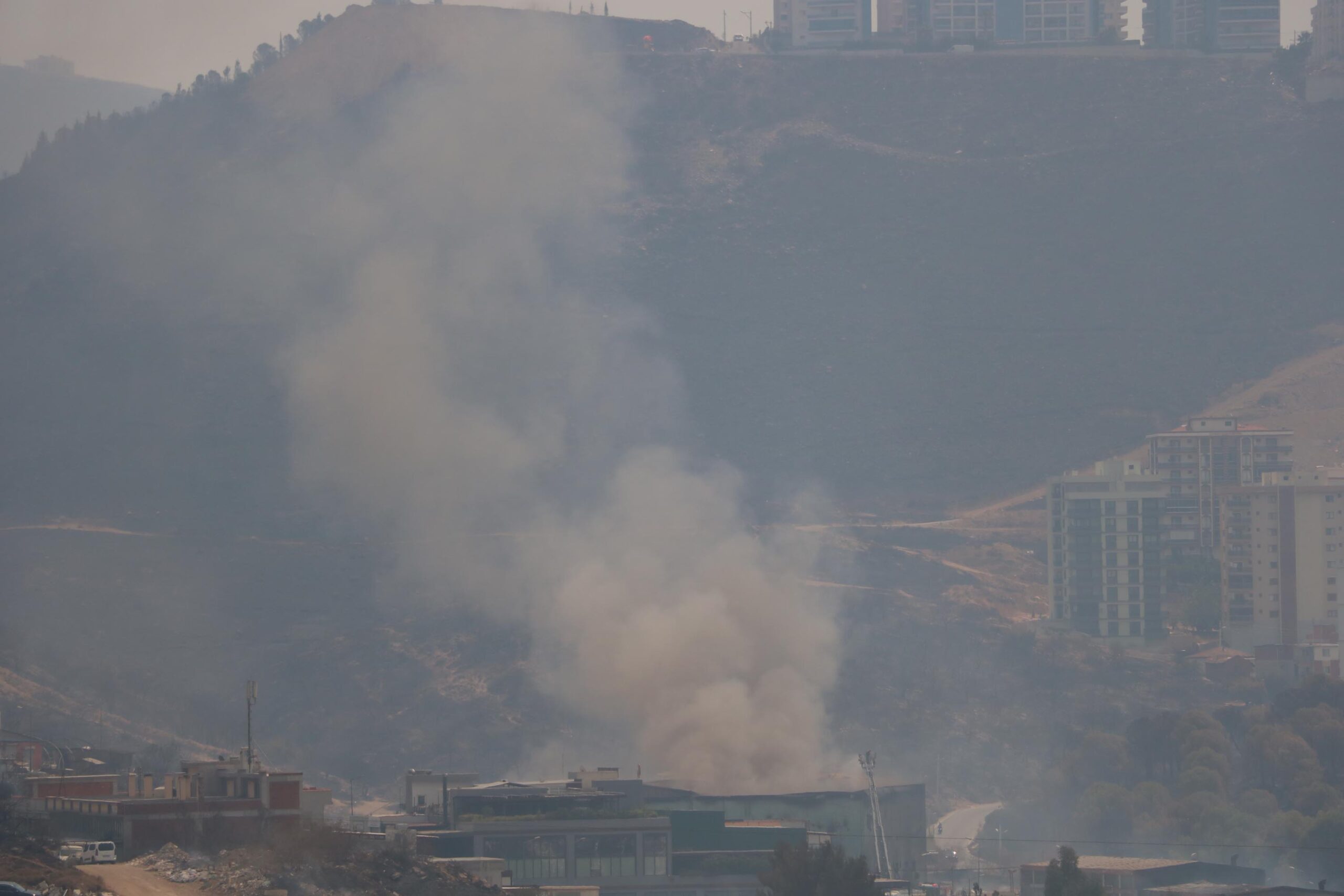 Karşıyaka ilçesi Yamanlar Dağı'nda çıkan ve rüzgarın da etkisiyle yayılan orman yangınına havadan ve karadan müdahale sürüyor. Fotoğraf: Yağmur ÖNGÜN / İzmir, (DHA)