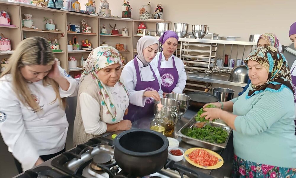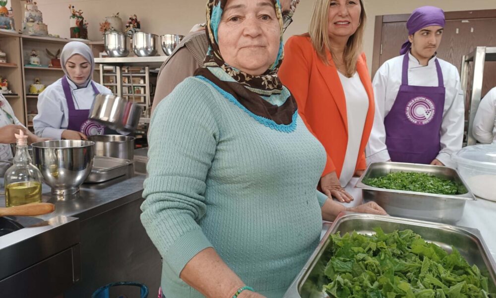 İzmir'in köylerinde yapılan yöresel ve geleneksel yemekleri canlandırmak amacıyla kültürel çalışma yapıldı.Tülay Dündar (Sağda).Fotoğraf:İzmir,(DHA)