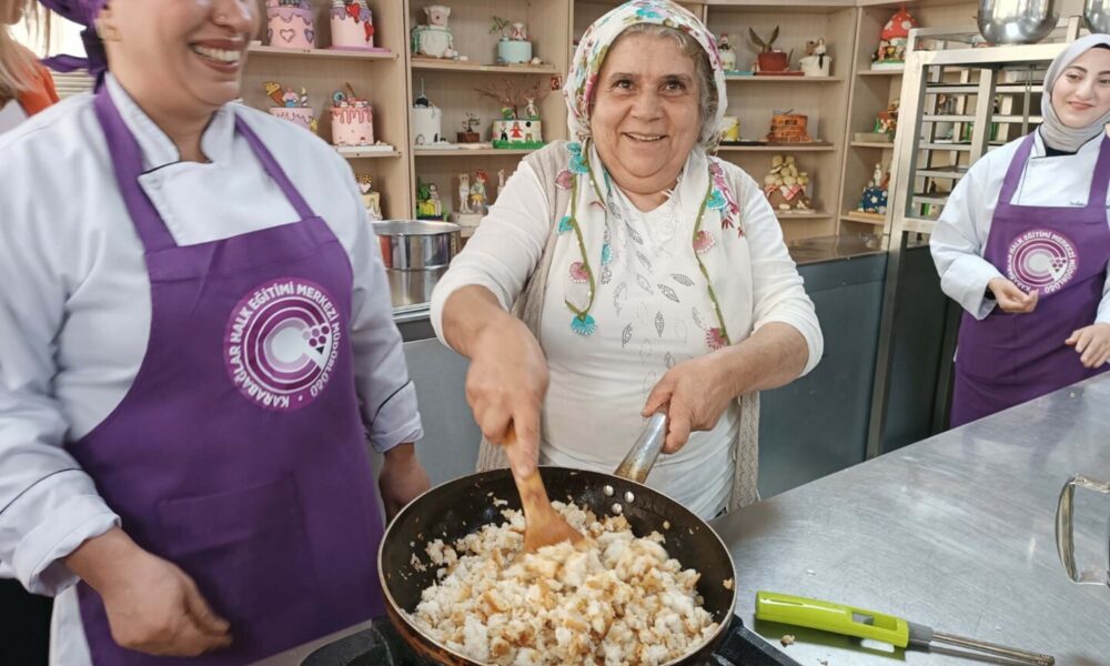 İzmir'in köylerinde yapılan yöresel ve geleneksel yemekleri canlandırmak amacıyla kültürel çalışma yapıldı.Karabağlar Halk Eğitim Merkezi Müdürü Fatma Demirci (Fotoğrafta).Fotoğraf:İzmir,(DHA)