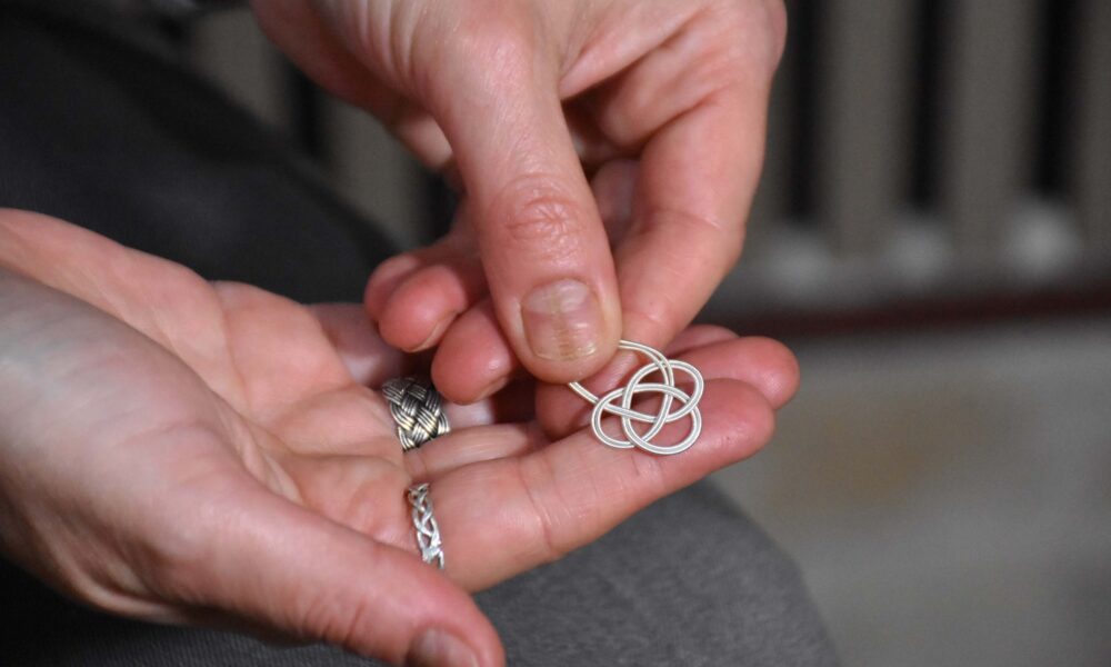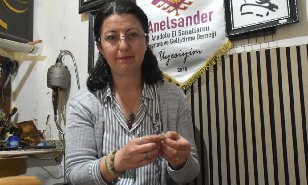 Mesleğinin sınıf öğretmenliği olduğunu, yaklaşık 8 yıldır kazaziye sanatıyla uğraştığını dile getiren Pınar Vatan, “Tirede devlet okulunda halen sınıf öğretmenliği yapıyorum. Kazaziye sanatı tespih püskülleriyle dikkatimi çekti. Tespih püsküllerinde görene kadar bu sanatla ilgili bir fikrim yoktu, çok ilgimi çekti. Araştırmaya başladım, deneme yanılma yöntemi ile bu sanata başladım, çok uğraştım, güzel bir yol katettim. Kazaziye bin ayar gümüşün ibrişim denilen ipek iplik üzerine çekilmesiyle hazırlanıyor. Kendine has motifleri, düğümleri var. Tellere çeşitli formlarda şekiller vererek, kendi tasarımlarınızı yarattığınız gümüş örme sanatı. Günümüzde unutulmaya yüz tutmuş sanatlardan biri” dedi.