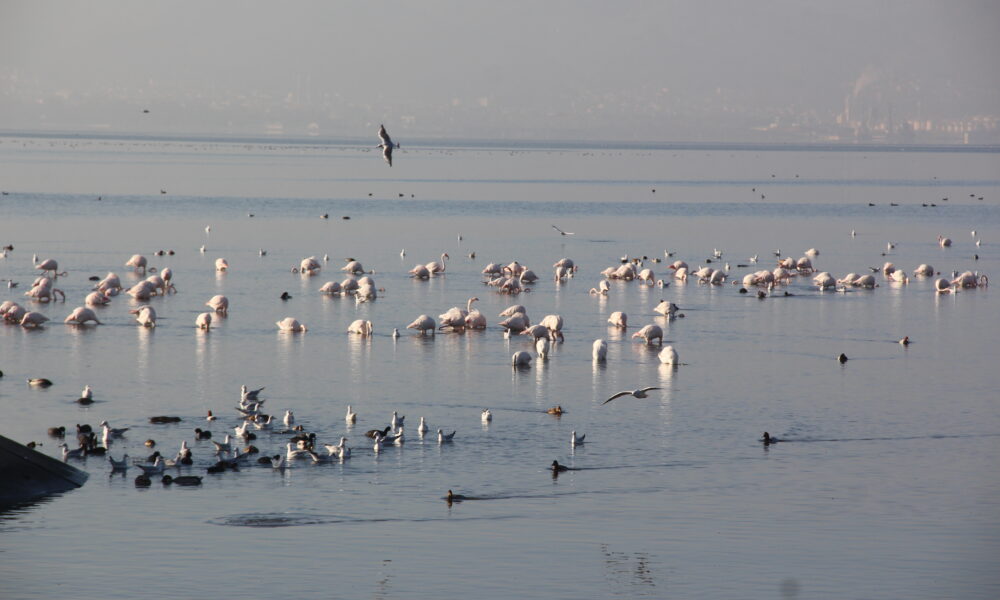 Marmara Denizi’nin doğu ucundaki İzmit Körfezi yüzlerce kuş türüne ev sahipliği yapıyor. Martı, tarakdiş, karabatak türlerinin bulunduğu İzmit Körfezi, son dönemde sayıları artan flamingoların da önemli durak noktalarından biri oldu. Plankton, alg ve mikroorganizmalar ile beslenen flamingolar yaklaşık 170 kuş türüne ev sahipliği yapan ve göç yolu üzerinde önemli duraklardan biri olan İzmit Körfezi’nde görüntülendi.