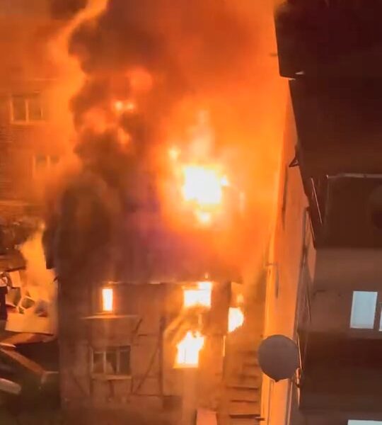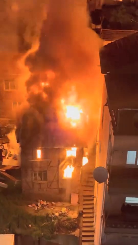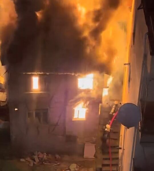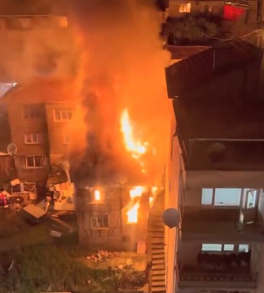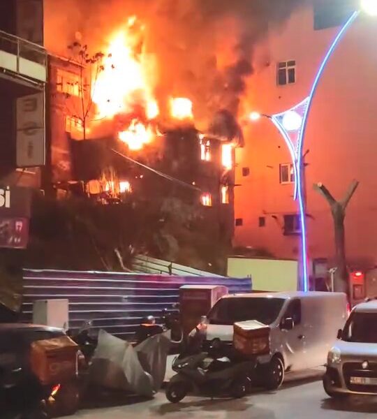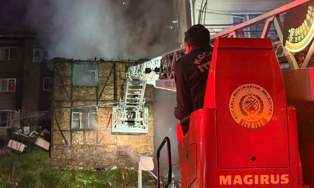 İzmit’te 2 katlı metruk bina alev alev yandı