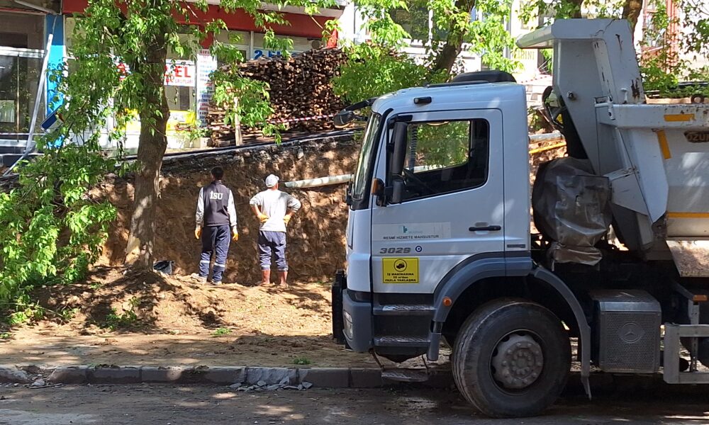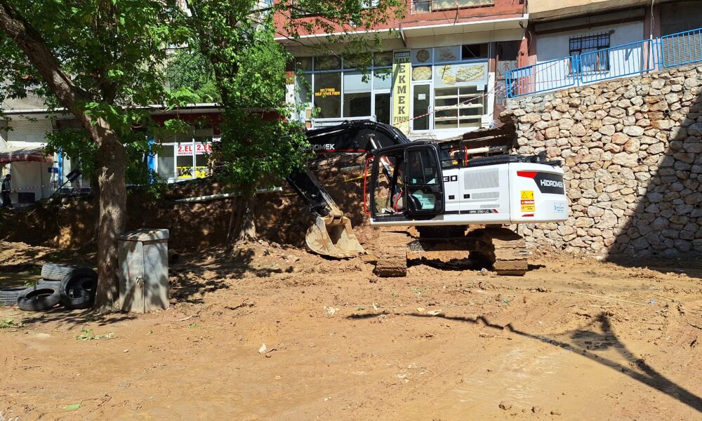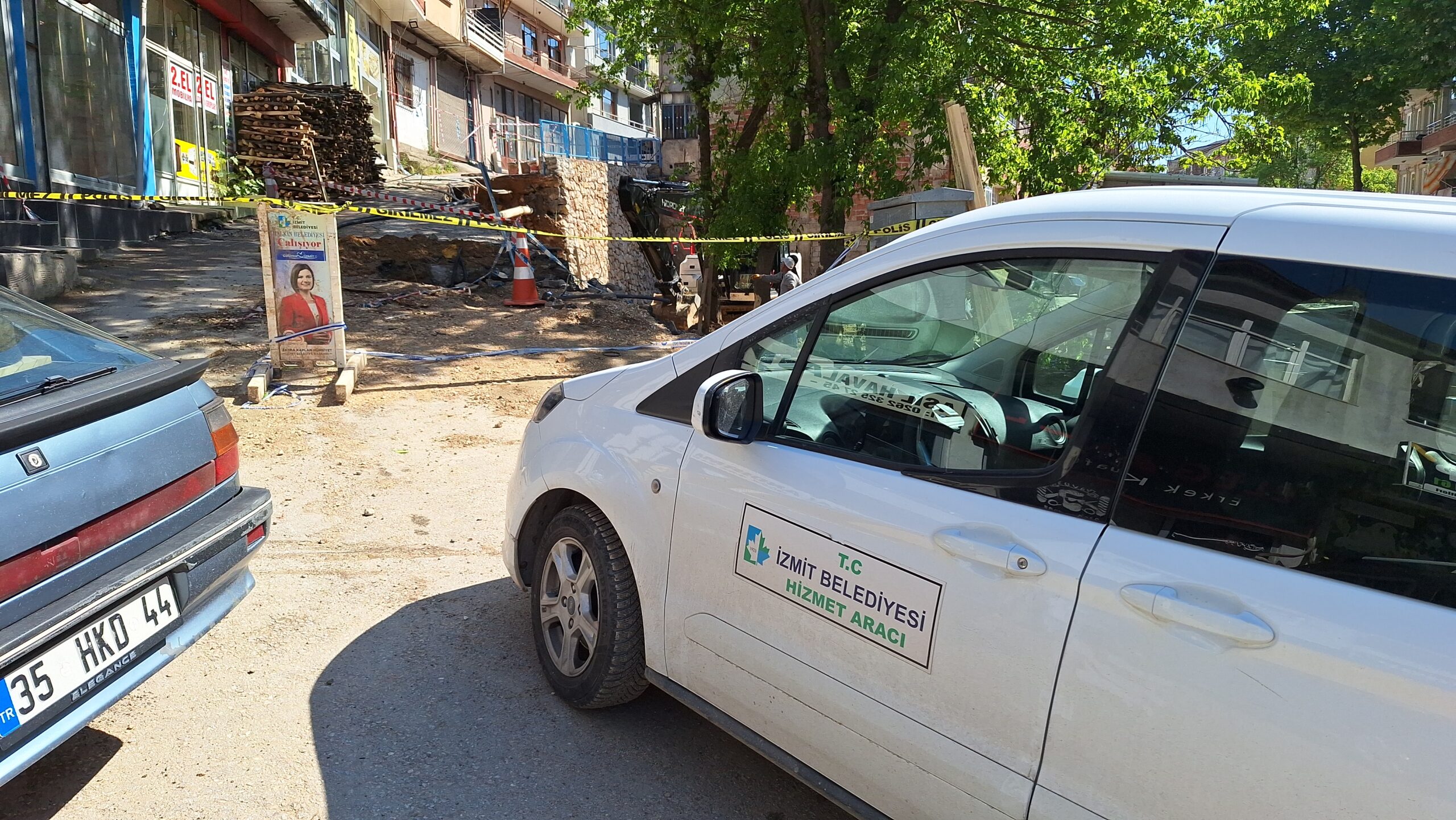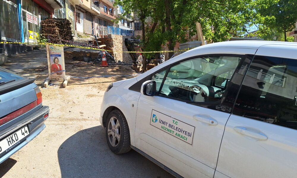 İzmit’te iş makinesiyle desteklenen istinat duvarında onarım başladı