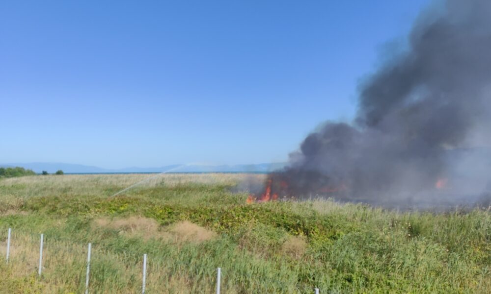 İznik Gölü kıyısında sazlık yangını