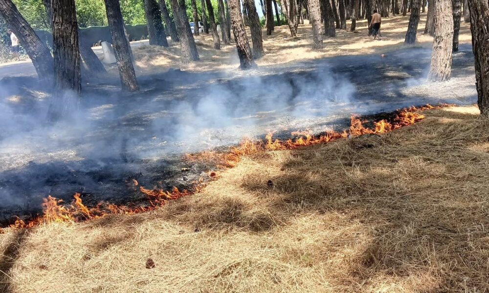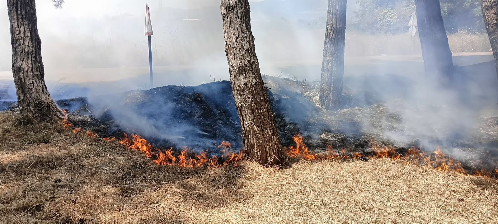 • Bursa’nın Orhangazi ilçesinde İznik Gölü sahilindeki çamlıkta çıkan yangın, itfaiye ekiplerince yarım saatte kontrol altına alınarak söndürüldü. Fotoğraf: Hasan BOZBEY / Orhangazi (Bursa), (DHA)