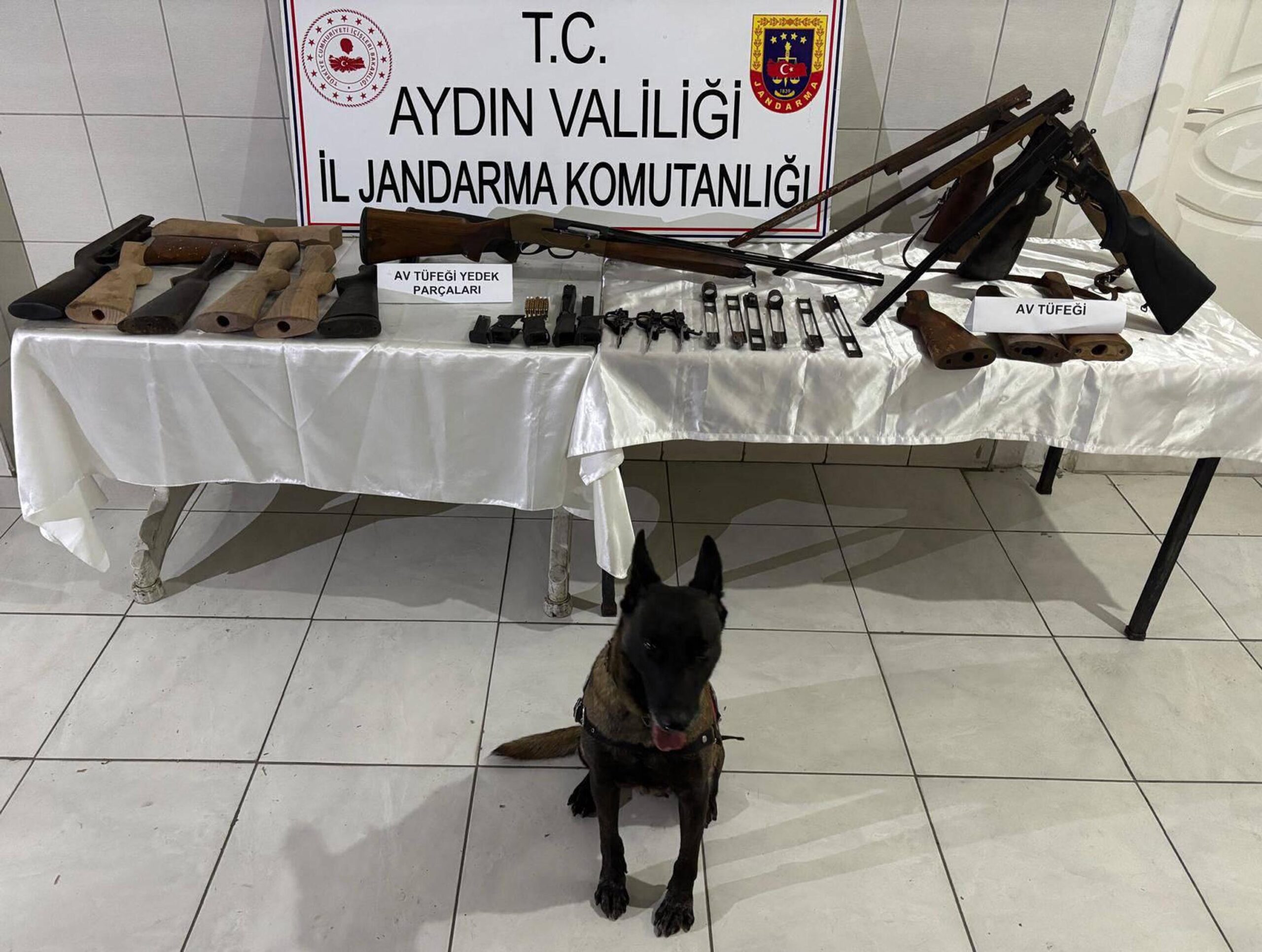 İl ve Bozdoğan ilçe Jandarma Komutanlığı ekipleri, istihbarat çalışmasıyla Madran Mahallesinde yaşayan kişinin evinde ruhsatsız silah tamiri ve imalatı yapıp, satmak için müşteri arayışında olduğunu tespit etti. KEP, KAFES, JABS ve PARS sistemleriyle yapılan araştırmaların ardından, ekipler, dün akşam saatlerinde Asayiş Şube Müdürlüğüne bağlı bomba arama köpekleri Obruk ve Tali eşliğinde, şüphelinin evi ve bağ evine operasyon düzenlendi. Evlerde ruhsatsız biri tam otomatik 4 av tüfeği, 13 tüfek kabzası, 3 tüfek gövdesi, 6 tüfek mekanizması, 4 tabanca kabzası, 3 tetik tertibatı, 1 tabanca üst kapağı, 3 tabanca şarjörü ve 31 fişek ele geçirildi, 1 şüpheli gözaltına alındı. Hakkında adli işlem başlatılan şüphelinin jandarmadaki işlemlerinin sürdüğü bildirildi.