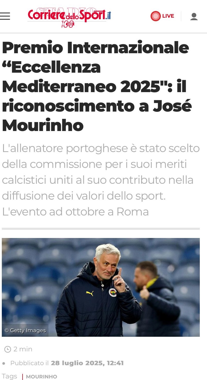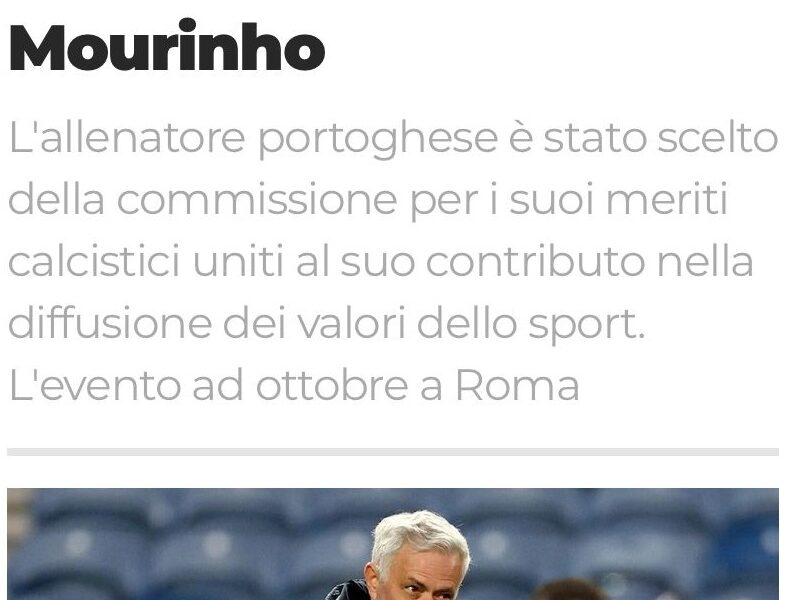 Bu yılki etkinliğin en dikkat çekici konuklarından biri, dünya futbolunun en başarılı ve simgesel teknik direktörlerinden Fenerbahçe Teknik Direktörü Jose Mourinho olacak. Corriere dello Sportun duyurduğu haberde organizasyon komitesi, Mourinho’ya bu ödülü yalnızca kazandığı sportif başarılar nedeniyle değil, aynı zamanda sporun evrensel değerlerini, kültürel kimliği ve halklar arası diyaloğu yayma konusundaki katkılarından dolayı takdim etmeye karar verildiği belirtildi.