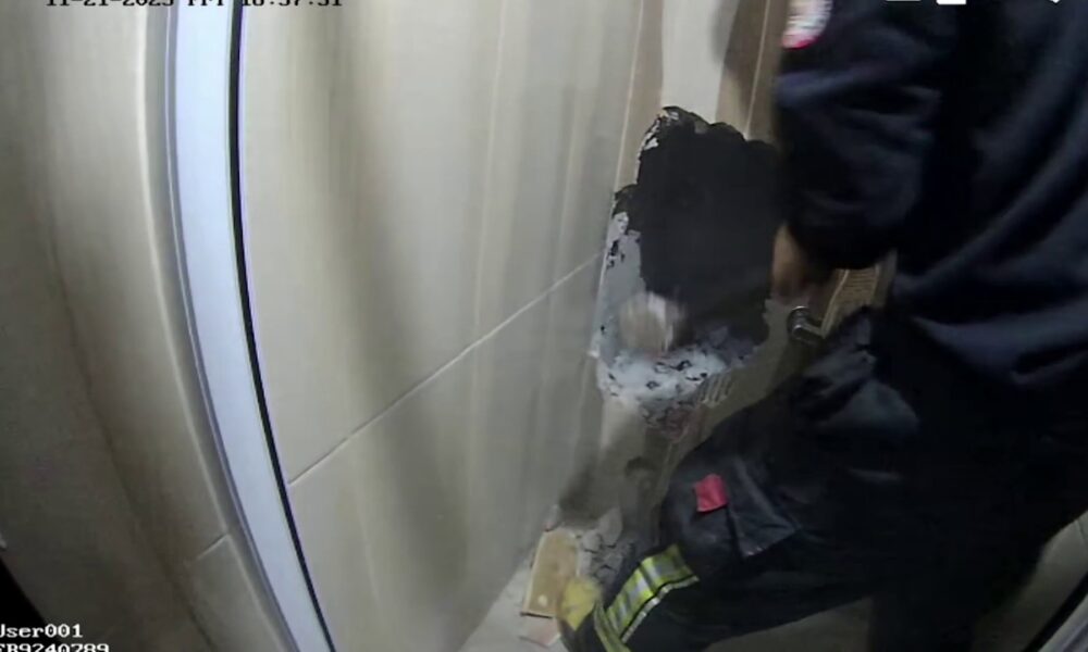 Kablo çekerken düştüğü havalandırma boşluğundan, duvar kırılarak kurtarıldı