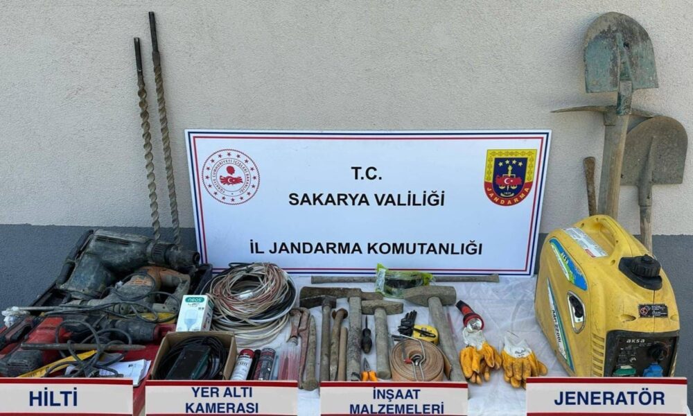 İl Jandarma ekipleri, Akyazı ilçesi Boztepe Mahallesinde kaçak kazı yapıldığı ihbarı sonrası harekete geçti. Ekipler, dün düzenledikleri operasyonda K.H. (67), M.Ç. (61) ve B.K.yi (45) kaçak kazı yaparken suçüstü yakaladı. Ekiplerin yaptığı aramada, 1 jeneratör, 2 kazma, 1 balyoz, 3 hilti, 2 kürek, 3 elektrik kablosu, 1 yeraltı görüntüleme cihazı, 10 el yapımı patlayıcı, 3 kilo beyaz renk patlayıcı olduğu değerlendirilen toz madde, 2,5 kilo sarı renk patlayıcı olduğu değerlendirilen madde, 1 mini ekskavatör ve çeşitli ebatlarda inşaat malzemesi ele geçirildi. Patlayıcı, beyaz renk patlayıcı olduğu değerlendirilen toz madde ve sarı renk patlayıcı olduğu değerlendirilen madde, Patlayıcı Madde İmha Timi (PAMİT) ve Olay Yeri İnceleme Timi (OYİT) tarafından kontrollü bir şekilde imha edildi. 3 şüpheli gözaltına alınırken, olay ile ilgili soruşturma başlatıldı.