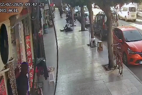 İlçe merkezini birbirine katan angusun, kaldırımda yürüyen kişiyi boynuz darbesiyle yaraladığı anlar ise bir iş yerinin güvenlik kamerasına yansıdı.