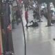 Kaçan angusun kaldırımdaki kişiyi boynuz darbesiyle yaraladığı anlar kamerada