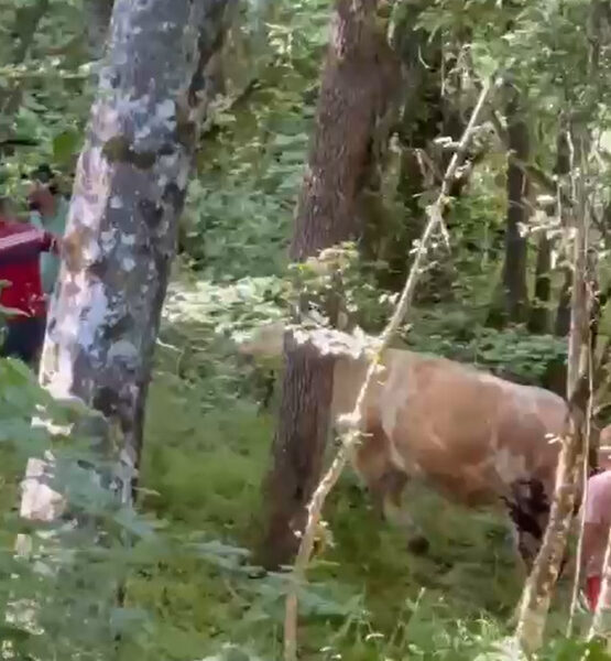 • Bolu'da sahibinin elinden kaçan kurbanlık boğa köylüler tarafından ormanda yakalandı. Fotoğraf: Bolu,(DHA)