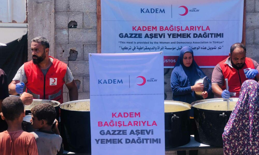 Çatışmaların başlangıcı olan Ekim 2023ten bu yana yaklaşık 2 milyon öğün yemeği bağışçılarının desteğiyle Gazzeli mağdurlara ulaştıran Türk Kızılaya Kadın ve Demokrasi Derneği (KADEM) de destek verdi. KADEMin katkısıyla Türk Kızılayın Gazzedeki aşevinden 76 gün boyunca günde 15 bin öğünlük sıcak yemek ulaştırılacak. İş birliği ile toplamda 1 milyon 140 bin öğün sıcak yemek dağıtılması sağlanacak.