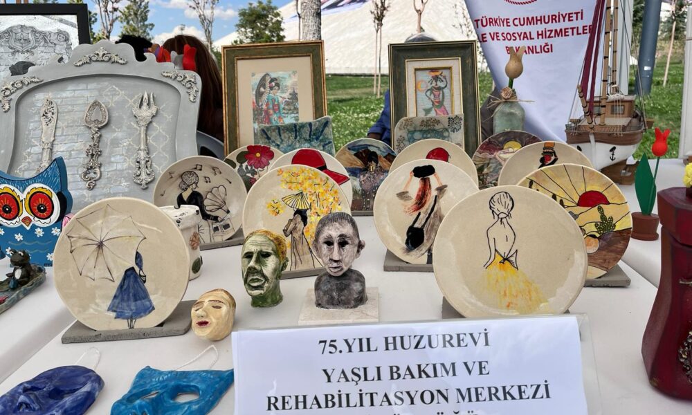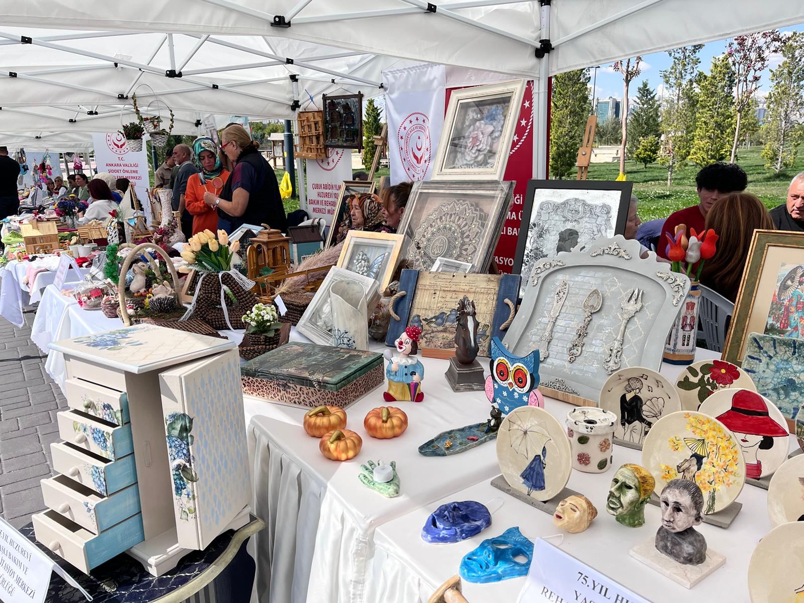 Aile ve Sosyal Hizmetler Bakanlığı'ndan hizmet alan kadın, çocuk ve yaşlıların, atölye çalışmaları ile ortaya koyduğu el emeği ürünlerinden oluşturulan sergi, Ankara Kültür Yolu Festivali kapsamında ziyaretçilere sunuldu. Fotoğraf: Ankara, (DHA)