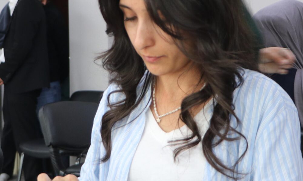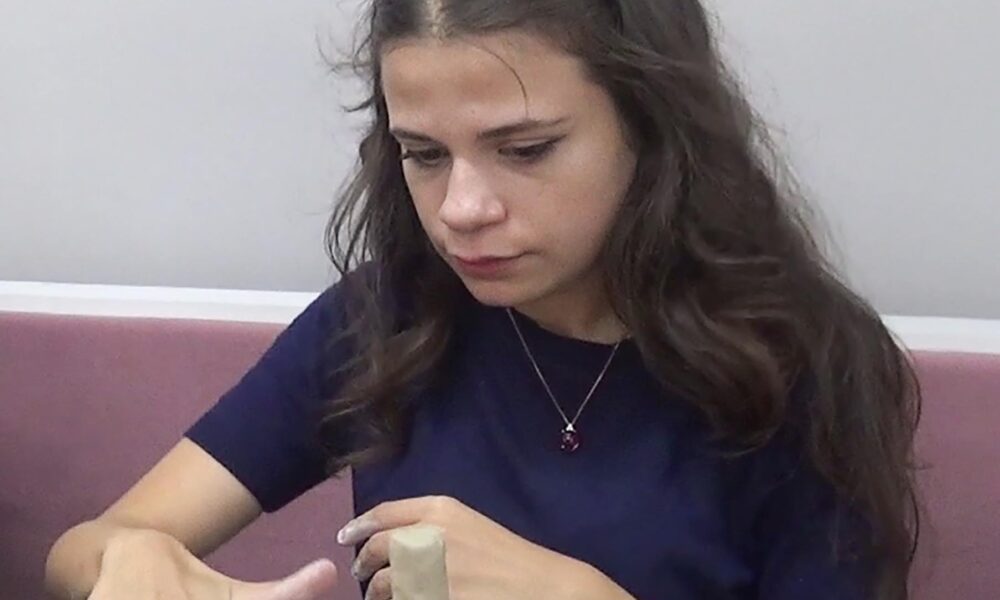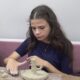 Kil atölyesinde keyifli bir zaman geçirdiğini söyleyen Psikolog Aybüke Sağıroğlu (Fotoğrafta), günün getirdiği stresten uzaklaştığını ve el emeğiyle bir şeyler yapmaya çalıştıklarını söyledi. Fotoğraf: Salih TEKİN / Erzurum,(DHA)