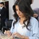 Kaktüsten takılık yaptığını belirten Beyza Türkoğlu (Fotoğrafta), Eğitim almadım ama hocamız çok yardımcı oluyor. Sanki uzun süredir killerle tasarım yapıyormuşuz gibi hemen adapte olabildik dedi. Fotoğraf: Salih TEKİN / Erzurum,(DHA)