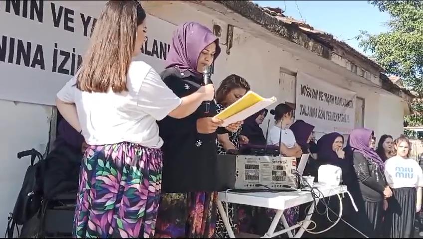 Mahalleliden, organizasyon sorumlusu Ayşe Döğer yaptığı konuşmada, “Bu sene etkinliğimizi bir eyleme dönüştürdük. Köyümüzün talan olup, gitmesini istemiyoruz. Hepimiz altın ziynet eşyası takıyoruz. Ama altın olmadan da hayat yaşanabiliyor. Bu etkinlikte olan kadınlarımızın hiçbiri altın takılarını takmadı. Ağaçlar, tarım arazileri, su olmadan hayatın hiçbir anlamı olmaz. Toprağımızın ziyan olmaması için bu zulme dur diyeceğiz. Hayatta hiçbir şey, sağlığımızdan önemli değildir. Sağlığımız ve geleceğimiz için sonuna kadar direneceğiz. Eğer birlik olursak, her şeyi başarabiliriz” dedi. Kadınlar, açıklamanın ardından ellerindeki pankartlarla oynayarak eğlendi.