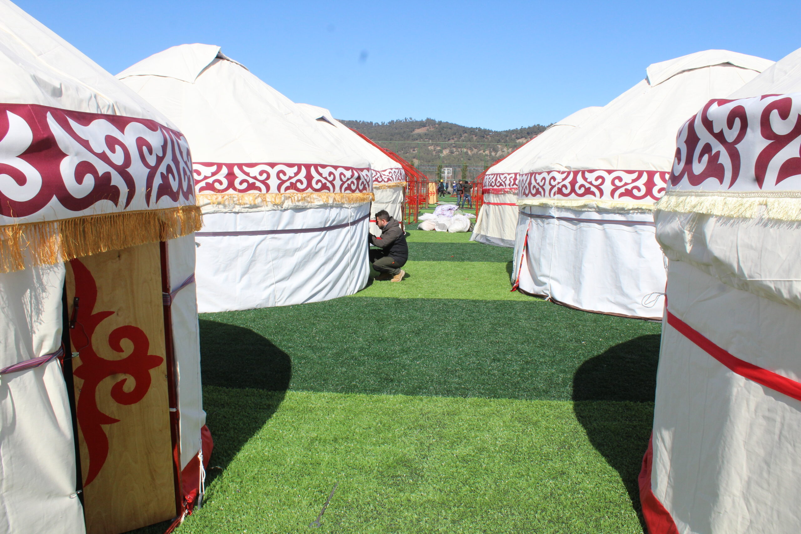 İstanbul Kırgızlar Dostluk ve Kültür Derneği Başkanı Tuygun Ergeş, “Bu çadırların özelliği istenildiği gibi sökülüp takılabilen bir çadır. Bunlar geleneksel çadırlardır. Kışın sıcaktır, yağmur, kar yağdığında geçirmez. Yazın da serinliğini korur. Genelde içerisinde bir aile rahatlıkça kalabilir. 15-20 kişi içerisinde kalabilir. Bunlar ortalama 5 metre çapında. Şu ana kadar yaklaşık 60 çadır kuruldu. Akşam saatlerine kadar 120 çadır kurulur” dedi.