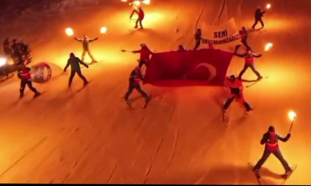 Kalp krizi sonucu ölen milli kayakçı anısına meşaleli gösteri