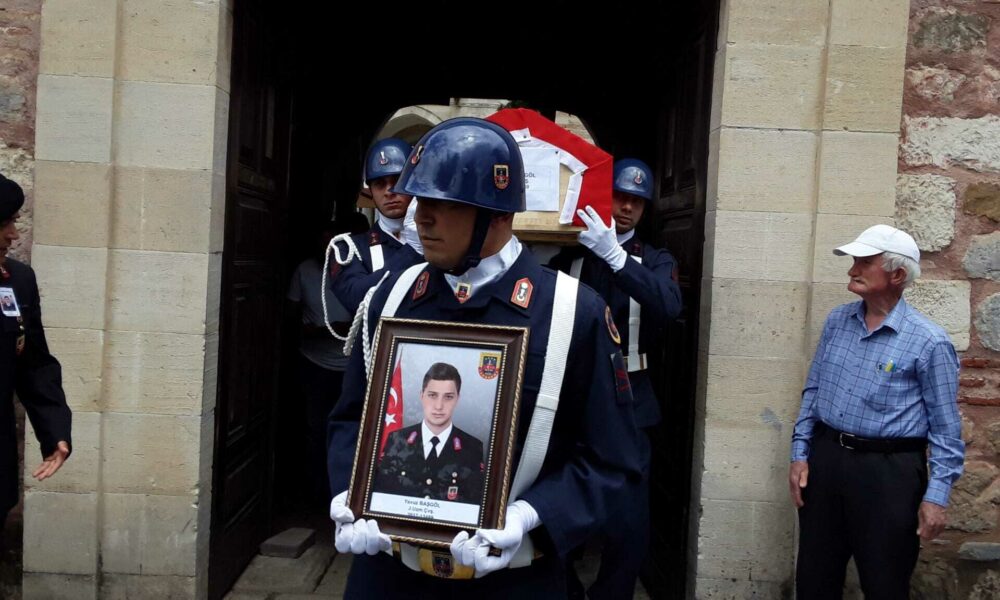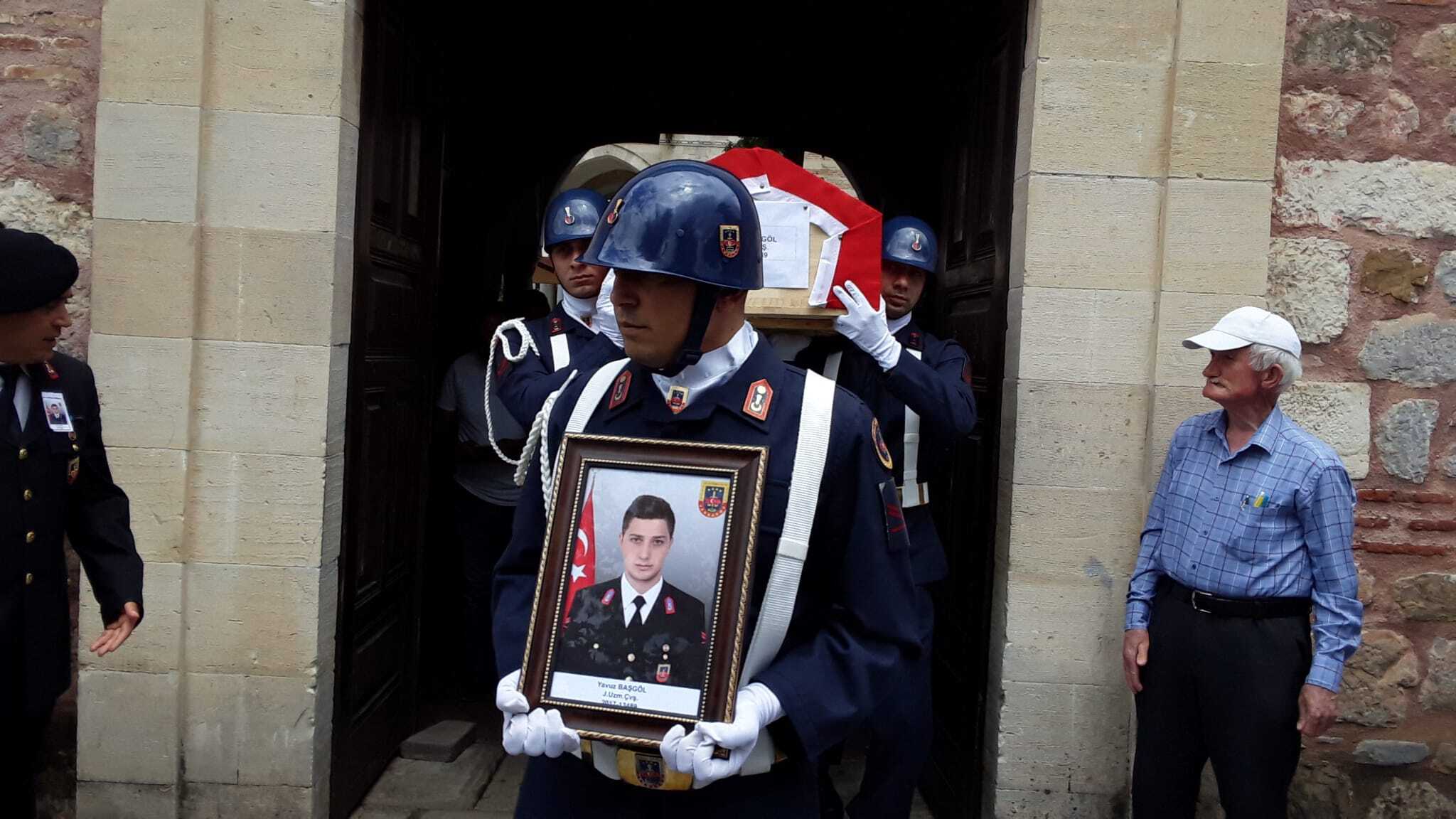 • Kocaeli'nin Gebze ilçesinde ilçe jandarma komutanlığında görev yapan uzman çavuş Yavuz Başgöl (27), evinde geçirdiği kalp krizi nedeniyle kaldırıldığı hastanede hayatını kaybetti. Başgöl, törenle son yolculuğuna uğurlandı. Fotoğraf: Erol POLAT/Gebze(Kocae