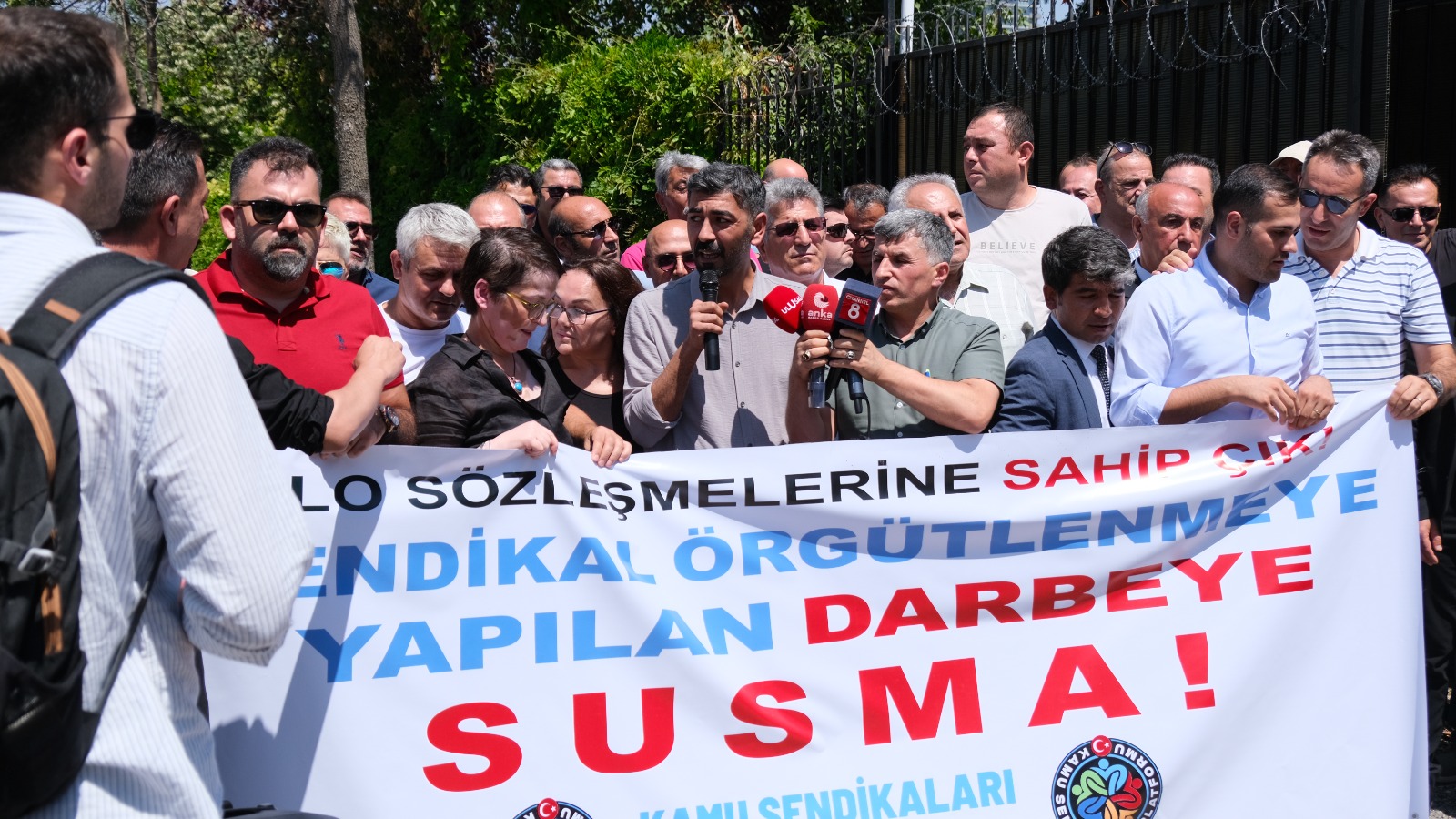 “ILO, patronların, işverenlerin, güç erklerinin, para sahiplerinin ILOsu mudur? ILO, sermayenin, koltukların, sarı sendikaların ILOsu mudur?İşçilere, kamu emekçilerine darbe yapılırken işçilerin toprağı, işçilerin evi böyle sessiz kalır mı? ILOya sesleniyoruz; kapılarını işçilere ve memurlara samimiyetle aç ve görüşlerini beyan et. Patronlara, işverenlere, sermayeye karşı işçi sınıfına yapılan darbeye sessiz kalma.”