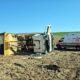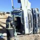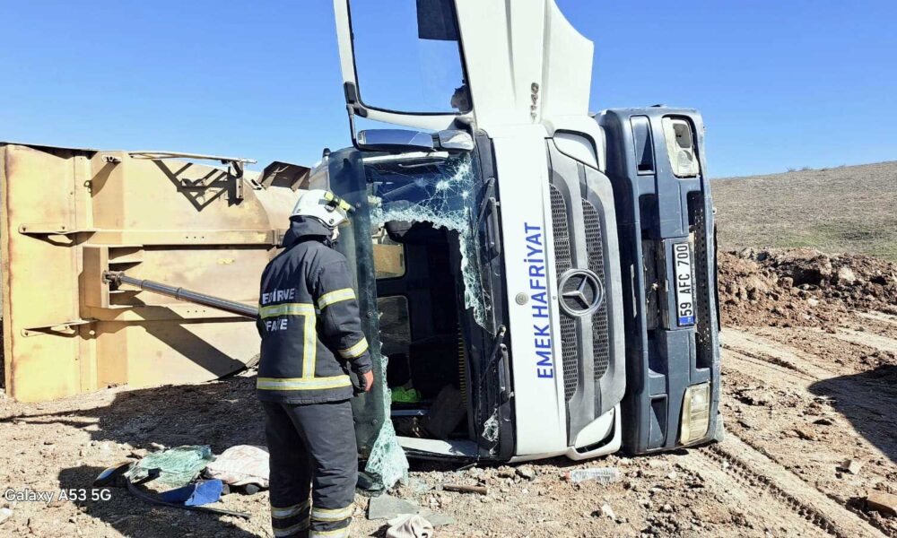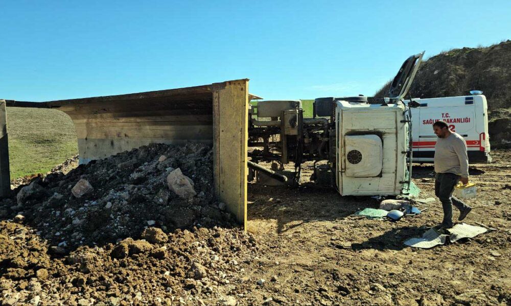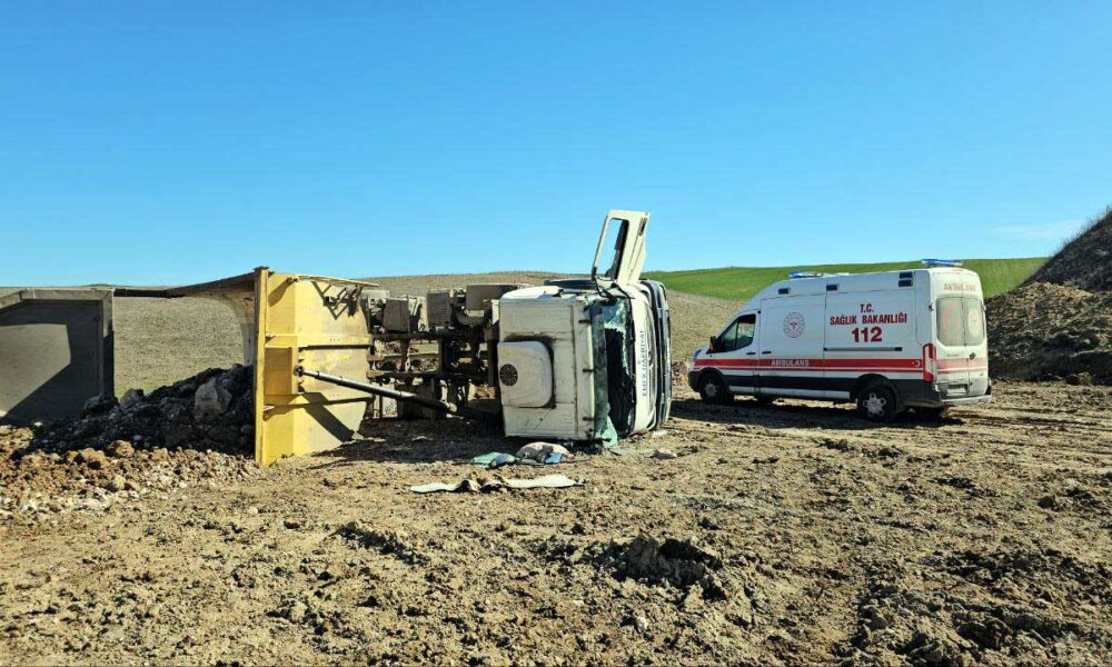 Kamyon, hafriyat boşaltırken devrildi; sürücü yaralı