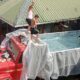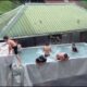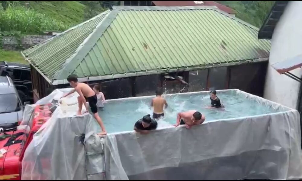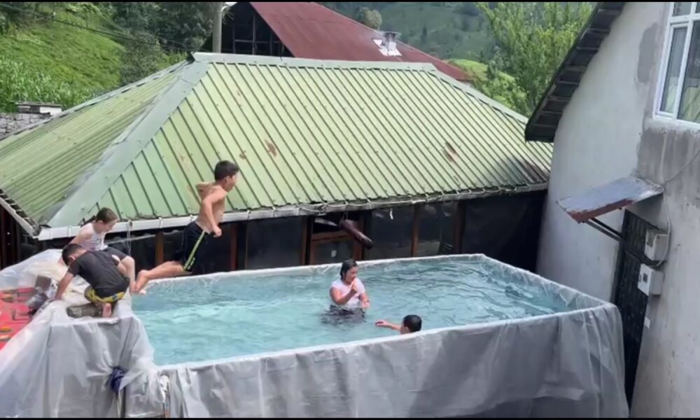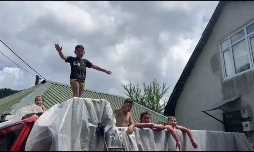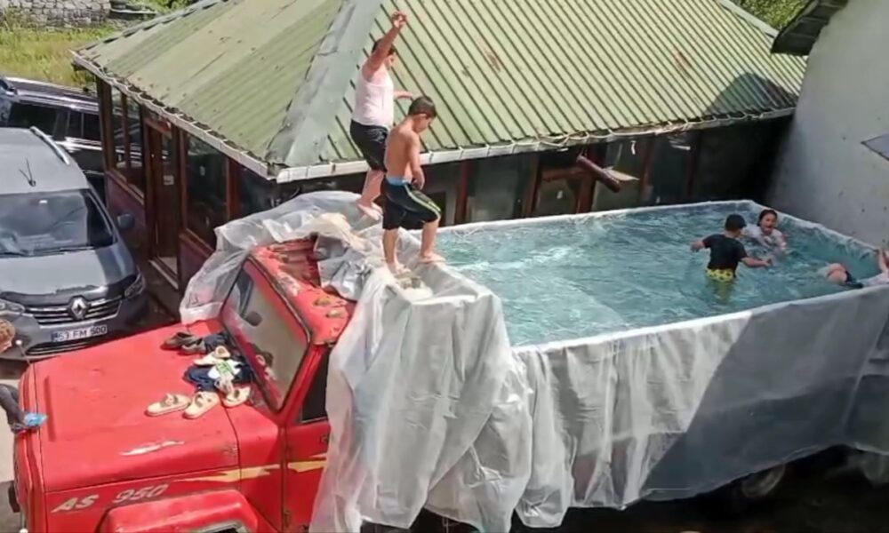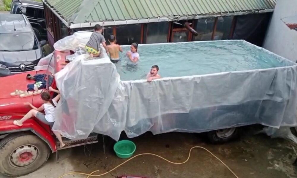 Kamyon kasasında çocukların yüzme keyfi kamerada