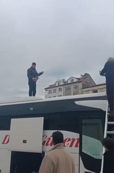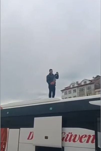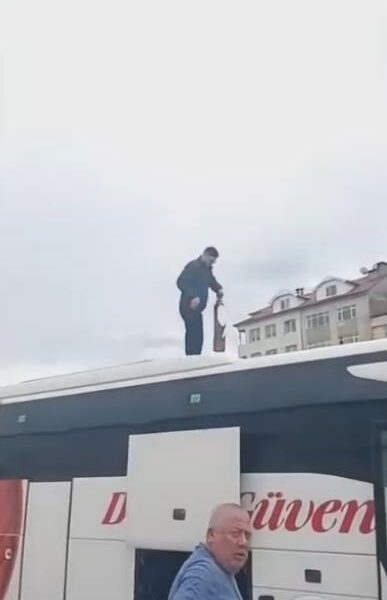 Kamyon kasasında patlayan yangın tüpü, otobüsün üzerine düştü