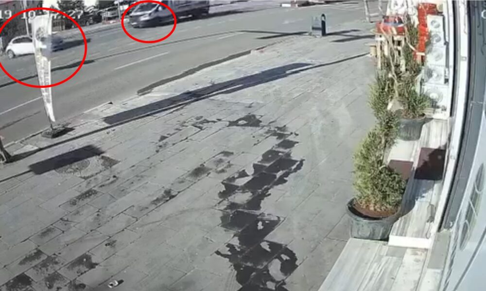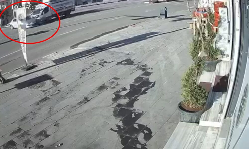Kamyonet ile otomobilin çarpıştığı kaza kamerada: 2 yaralı