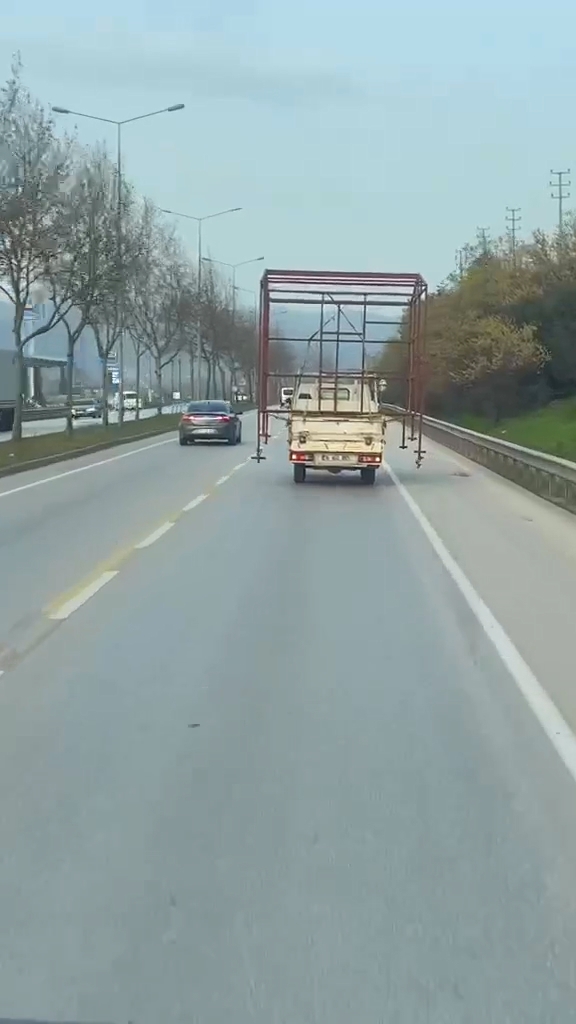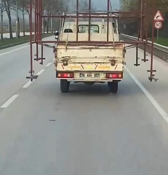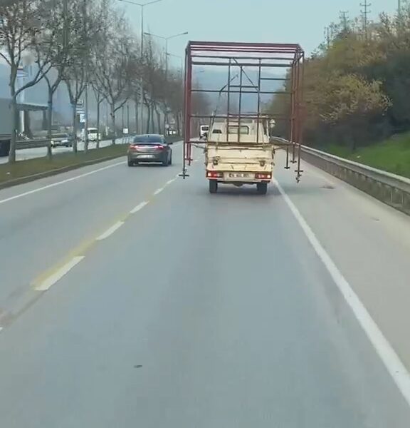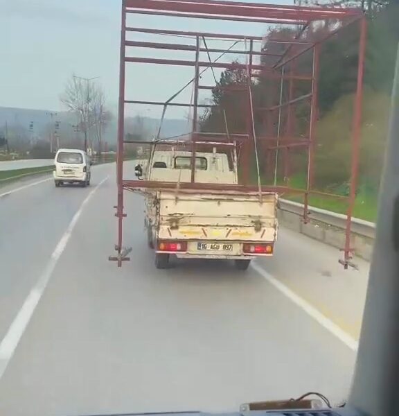 BURSA’da, kamyonetin kasasında çelik kulübe iskeletinin hiçbir önlem alınmadan taşınması cep telefonu kamerasıyla görüntülendi.Kestel ilçesinde, Ankara Bulvarı Barakfakih Mevkisinden, kent merkezine giden 16 AGU 897 plakalı kamyonetin kasasında, önlem alınmadan taşınan çelik kulübe iskeleti sürücüleri tedirgin etti. Trafikte sağ şeritte ilerleyen kamyonetteki çelik kulübenin düşme ihtimaline karşı bazı sürücüler yavaşladı. O anlar cep telefonu ile kayda alınıp sosyal medya hesaplarından paylaşıldı.Polis, plakasından yola çıkarak sürücüyü belirlemek için çalışma başlattı.
