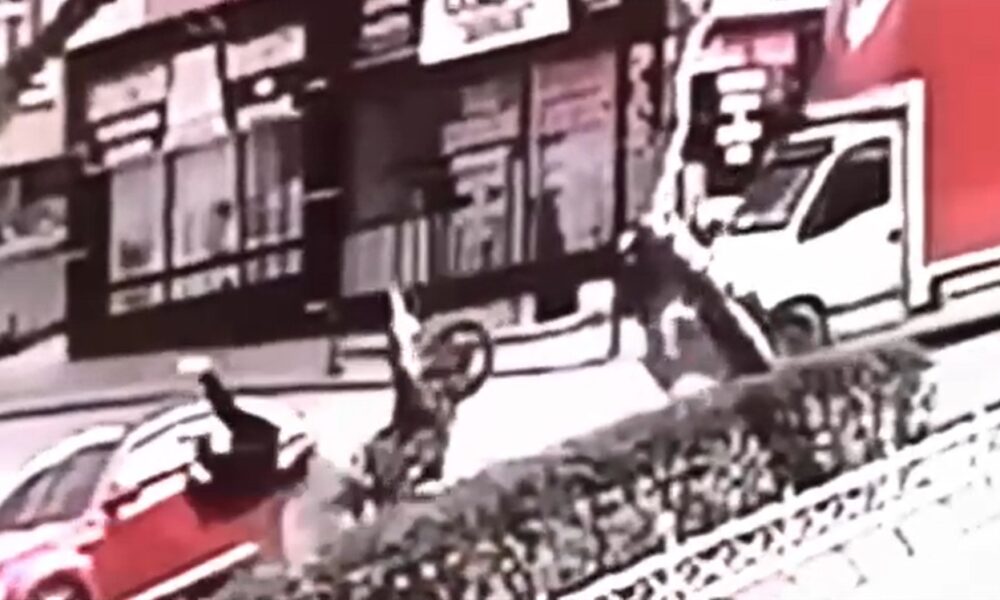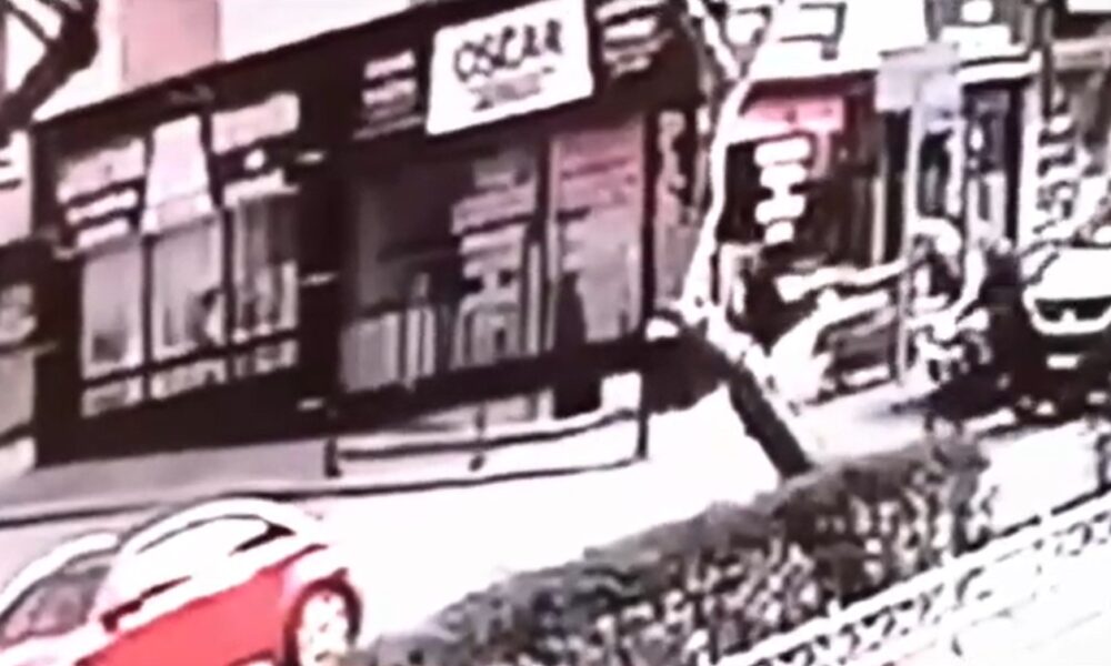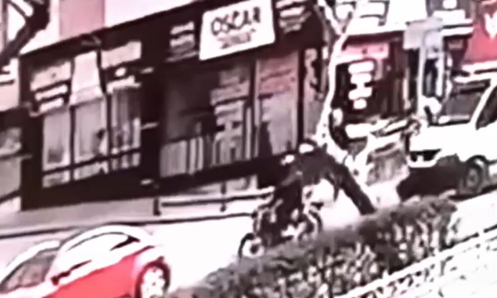 Bir işletmenin güvenlik kamerasına yansıyan kazayla ilgili polis, inceleme başlattı.